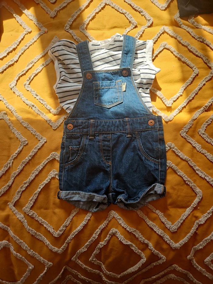 Salopette short et petit t-shirt marinière rayée D'autres pièces en 6,9,12,18 et 24mois