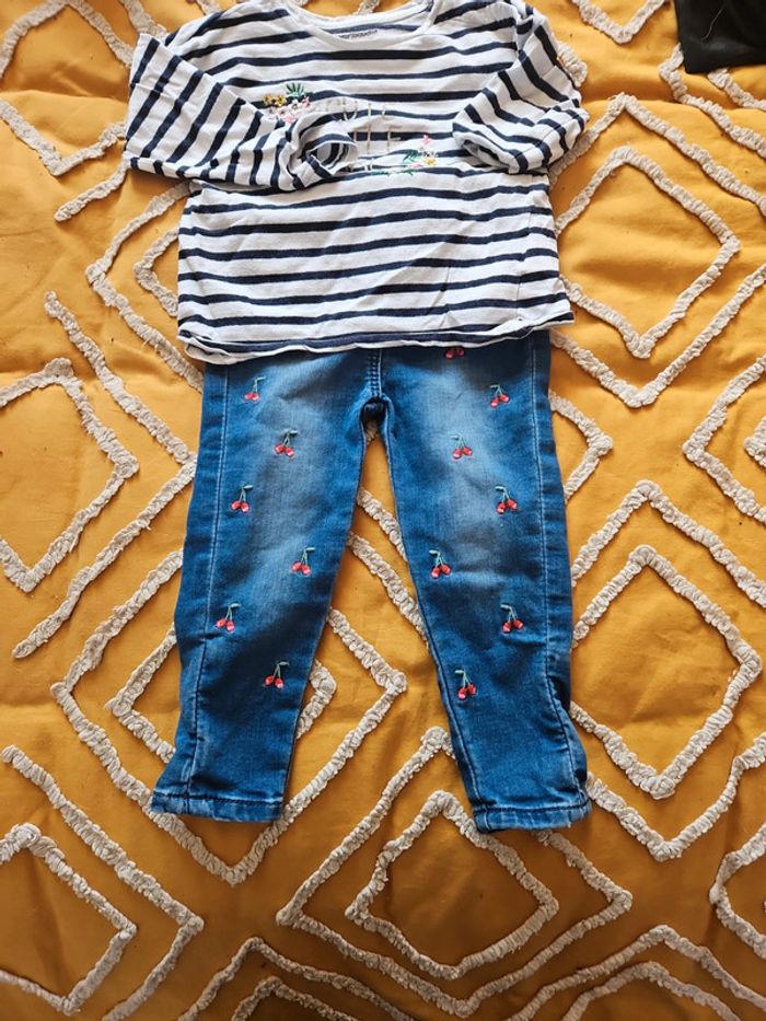 Petit jeans brodé cerises et marinière D'autres pièces en 6,9,12,18 et 24mois