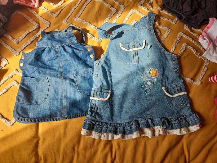 Bretelles salopette Jeans motif winnie l'ourson et petits coeur