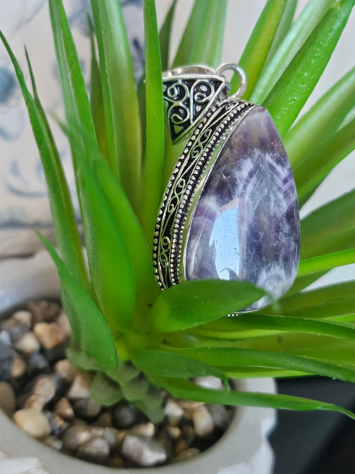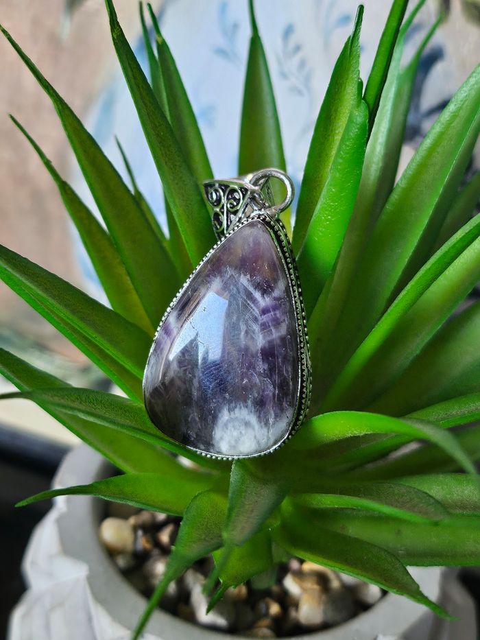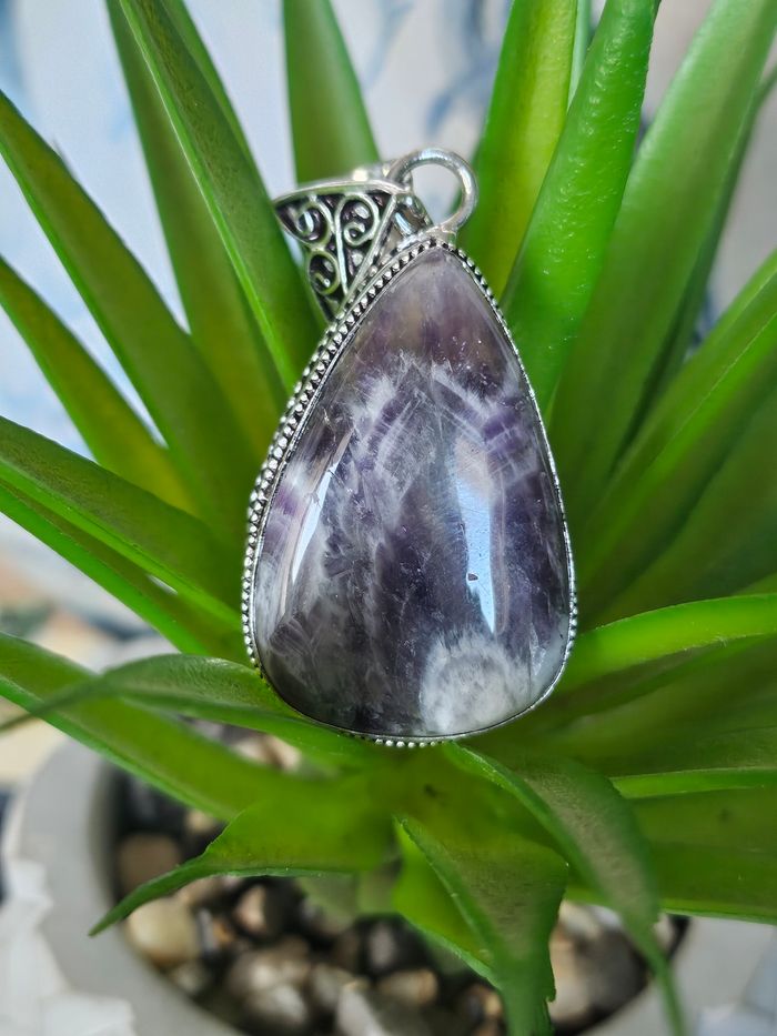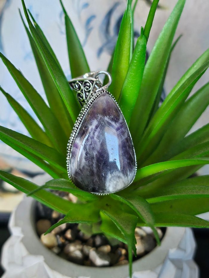 Pendentif texturé en argent sterling 925 avec pierre améthyste - photo numéro 3