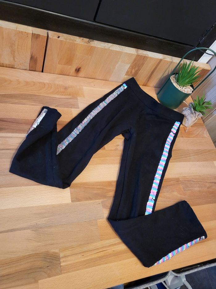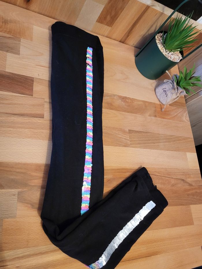 Legging noir pailettee réversible argent t et multicolore taille.7/8ans