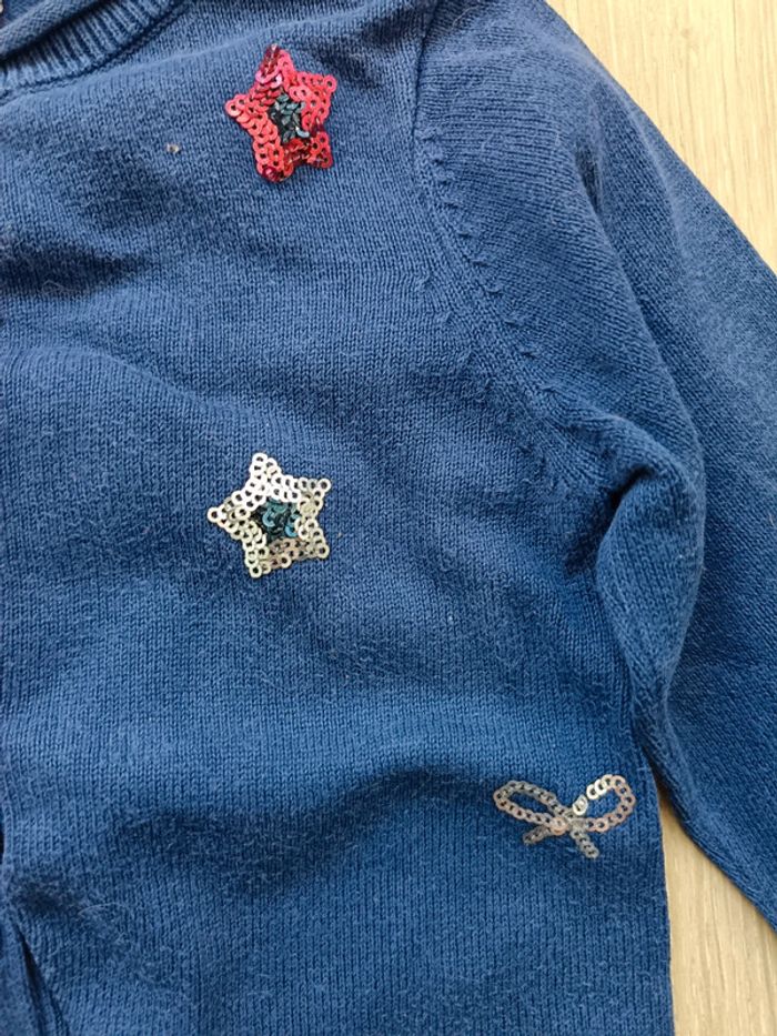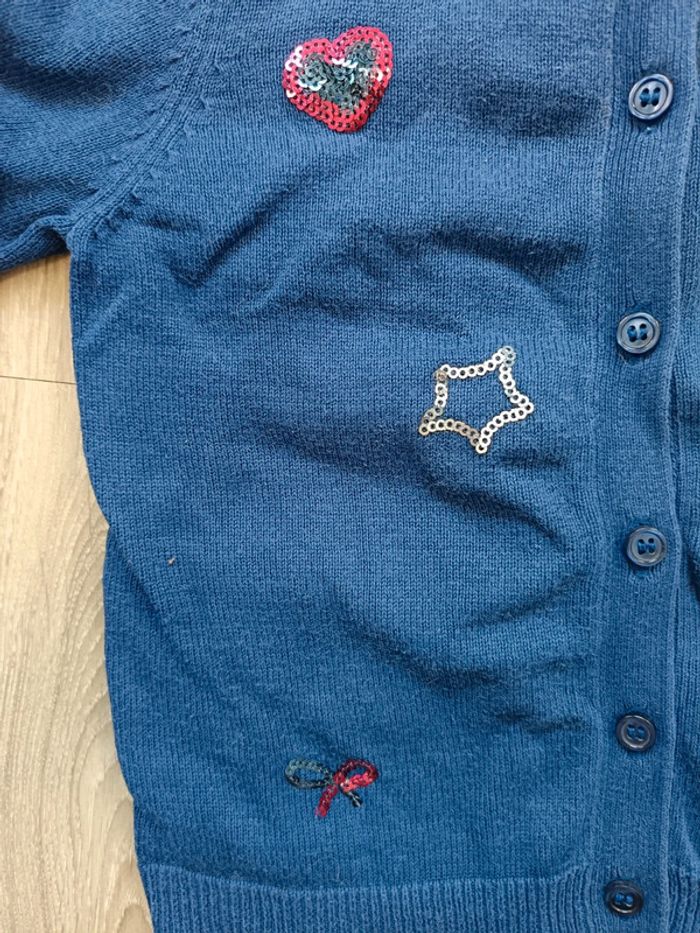 Gilet mignon bleu foncé motifs sequins cœur étoile noeud Lisa Rose fille 4 ans - photo numéro 3