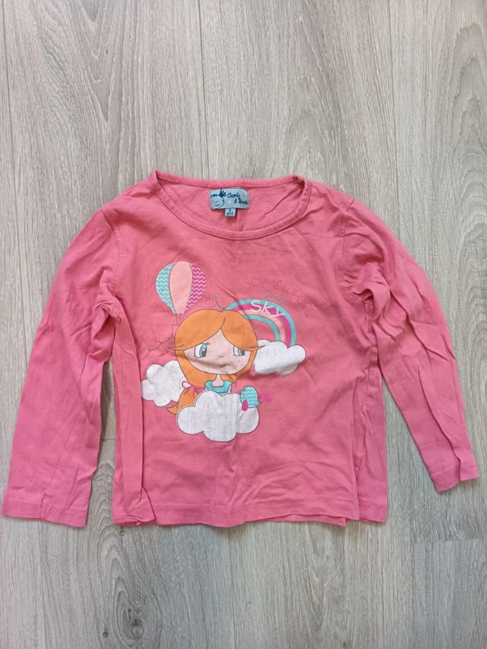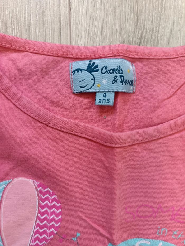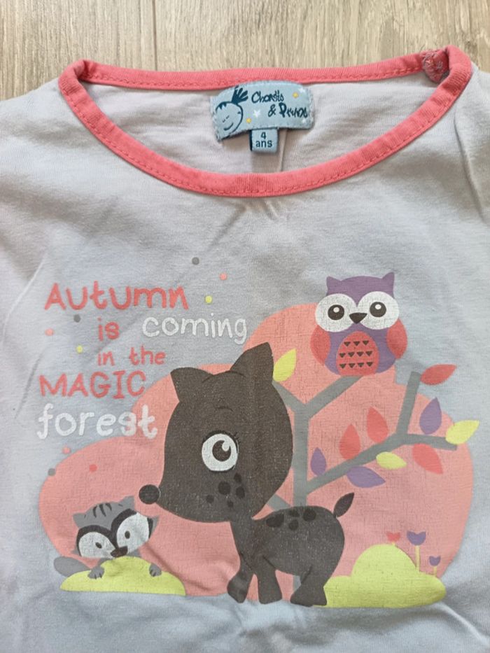 Lot 4 t-shirts manches longues fille 4 ans rose vert d'eau biche hibou pairs cœur