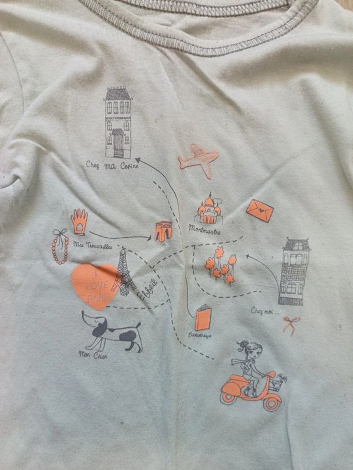 • Lot 4 t-shirts manches longues 4 ans fille 1 t-shirt La Halle vert d'eau Paris Montmartre Tour Eiffel 1 t-shirt rayé rose motifs papillons 1 t-shirt parme motif forêt, chouette, biche, raton laveur 1 t-shirt rose avec petite fille, montgolfière, arc en ciel et nuages • Bon état général. On voit qu'ils ont servi. Certains t-shirts comportent des imperfections discrètes (je n'arrive pas à les faire ressortir en photo). • Envoi rapide et soigné D'autres vêtements, même taille sur ce lien : #vetementsfille4ans_charlilia Remise négociable en fonction des lots