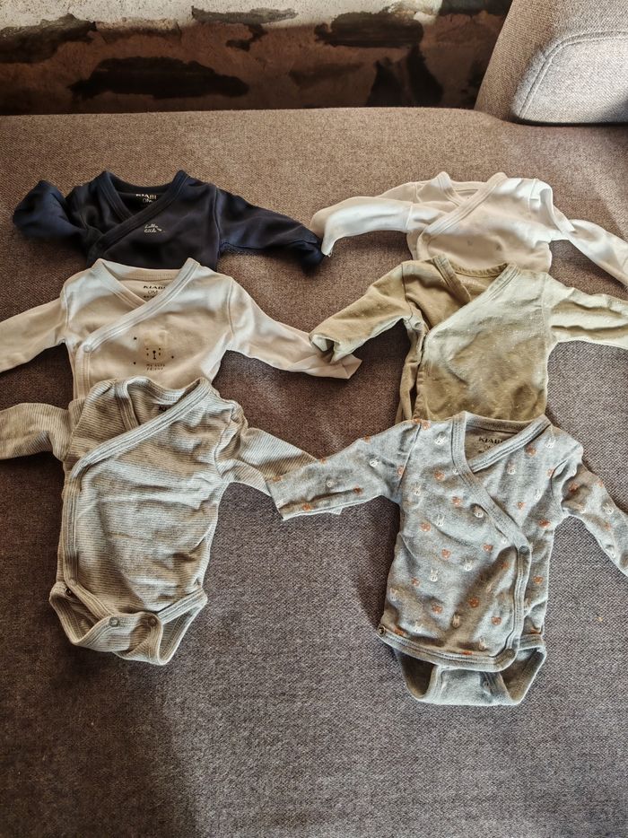 Vend 6 bodies manche longue en très bon état. Taille 0 ( naissance)