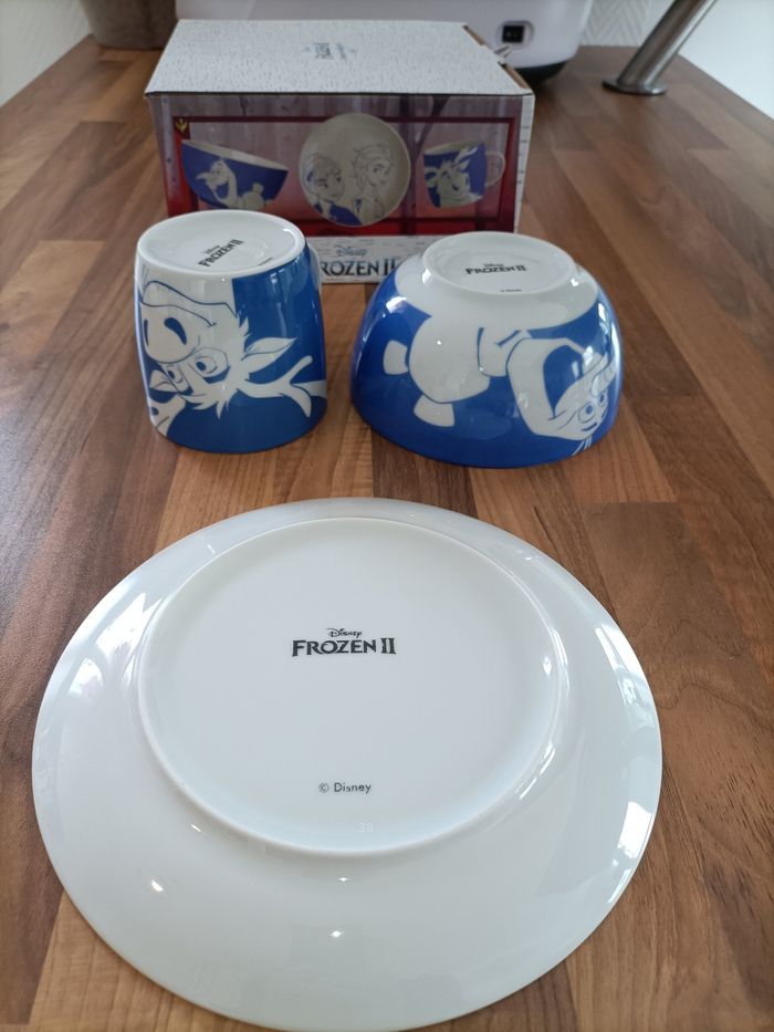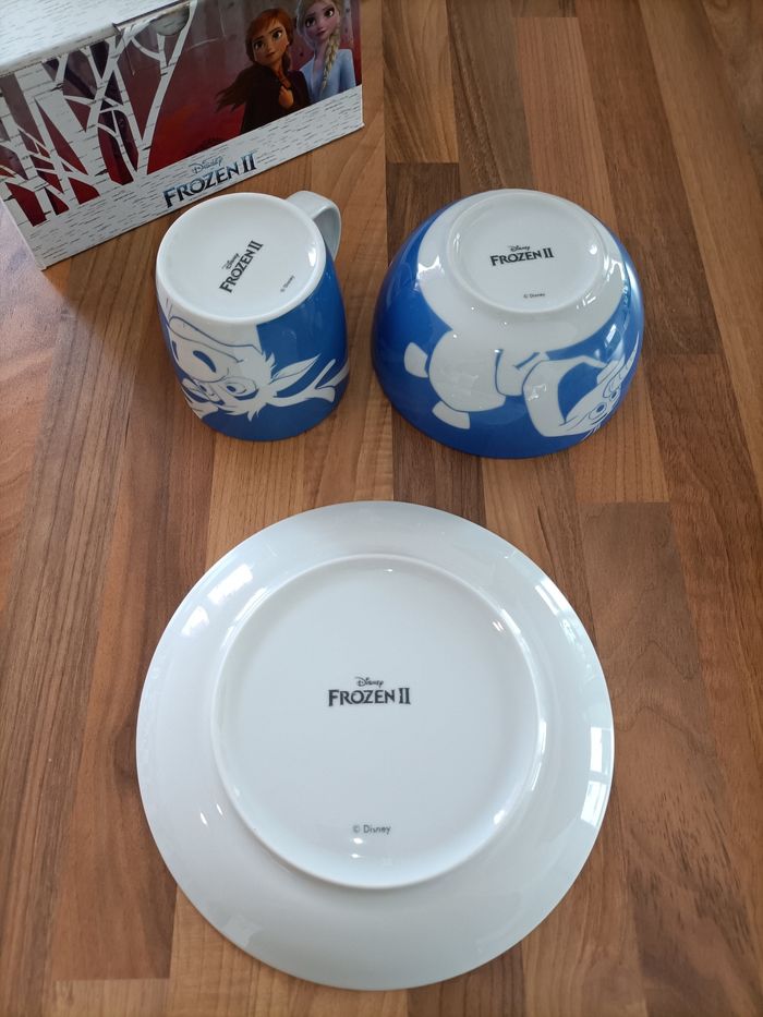 Lot vaisselle neuf petit déjeuner reine des neiges blanc et bleu : tasse, bol et assiette - photo numéro 7