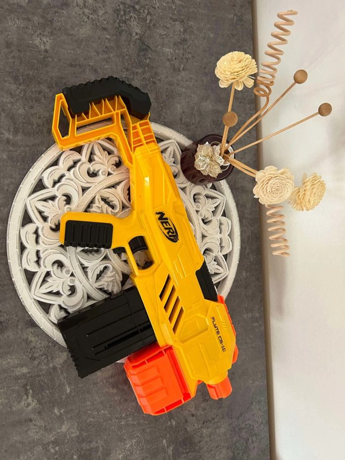 Pistolet Nerf, blaster électrique. Modèle : Flyte CS-10 17 Fléchettes Couleur : Jaune 💛 État : Très bon. #jouetsletitia84 🌺 Les réductions sont activées 🌺 🌺 Dressing trié par # et dans a propos 🌺 🌺 Envoi rapide 🌺 🌺 Tous les vêtements sont lavés avant expédition 🌺 🌺 N’hésitez pas à me contacter, je réponds rapidement ☺️🌺