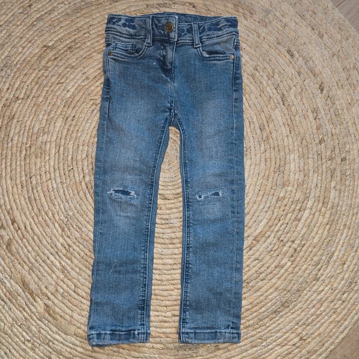 Jean slim fille 3 ans Motifs fleurs brodés en haut du pantalon