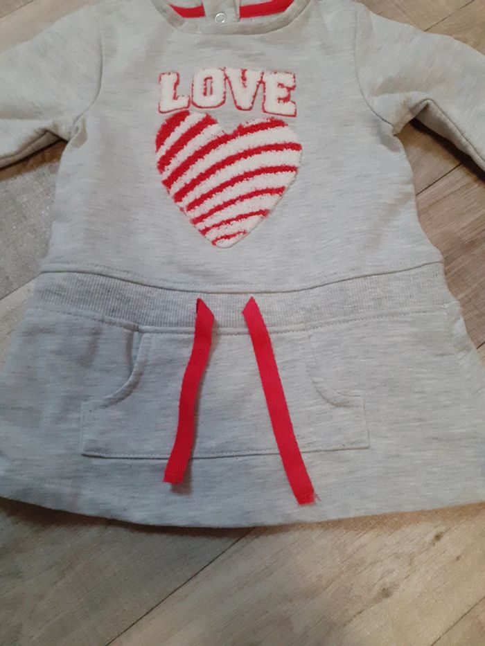 Robe sweat fille gris chiné cœur rouge et blanc 6 mois neuve - photo numéro 2