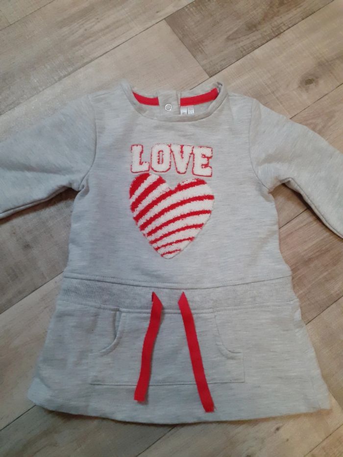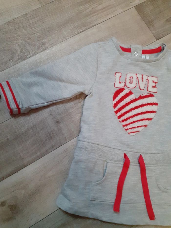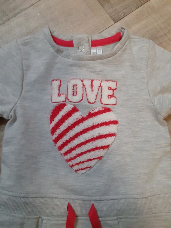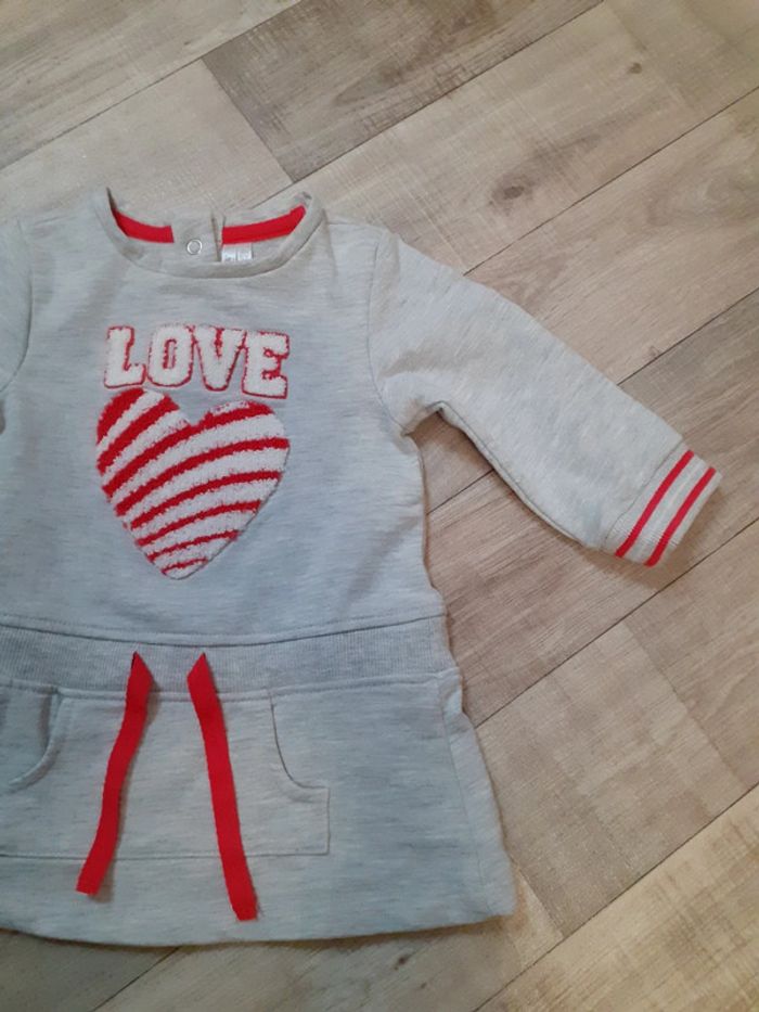 Robe sweat fille gris chiné cœur rouge et blanc 6 mois neuve - photo numéro 1