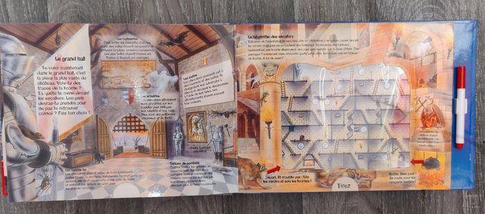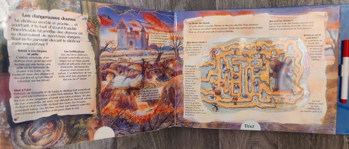 Livre de jeux où il faut résoudre des labyrinthes dans divers univers, tracés effaçables avec le stylo.