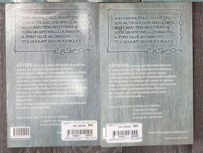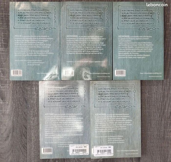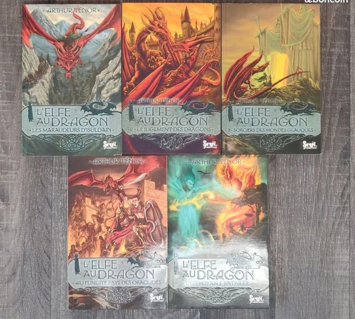 Collection de L'Elfe au Dragon du Tome 1 à 5 en très bon état ! Idéal pour un adolescent ou un adulte qui aime s'évader dans son imaginaire. Résumé : Son origine était un mystère, son alter ego une singularité, son caractère bien étrange pour un Sentinelle d’Oriadith… Il était l’Elfe au dragon, et il voulait savoir pourquoi. Pour la première fois de sa vie, Kendhil va rencontrer des humains. Sous la protection aérienne de Karlo, son dragon d’Hélion, il accompagne le doyen des elfes Sentinelles à Burgon, la cité des maîtres du fer. Lui qui rêvait de voyage et d’aventure, il ne va pas être déçu… ni ménagé par les événements. Comment pourrait-il en être autrement, quand on tombe entre les mains des Maraudeurs d’Isuldain, puis entre les griffes des orques de l’Obscur ?