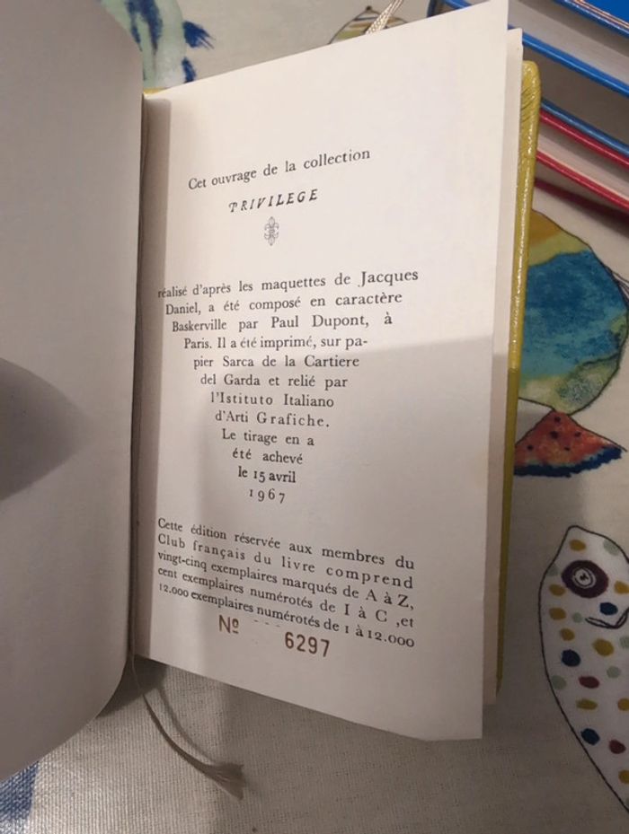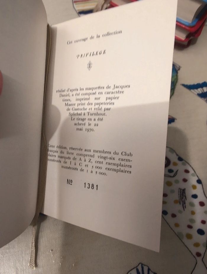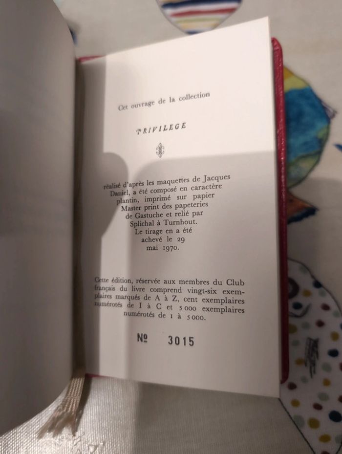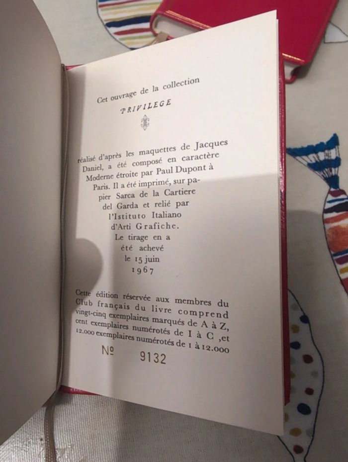 Lot de 5 livres du club français collection privilège. Chaque exemplaire est numéroté et les éditions sont limitées. Ils sont en très bon état. Aphorismes de Lichtenberg exp 6297 sur 12000. Poésies de Charles d'Orléans exp 1381 sur 5000. Nouvelles asiatiques de Gobineau. Parallèlement de Verlaine exp 9132 sur 12000. Coplas Soleares de Cantes Flamencos exp 3015 sur 5000. Lot indissociable. #clubfrancaisdulivre #collectionprivilege