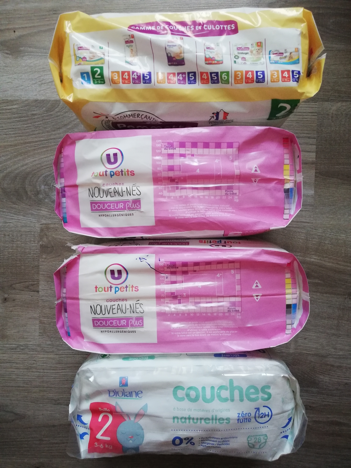 Vend un lot de 4 paquets de couches T2 neufs pas ouverts Taille 3/6 kg