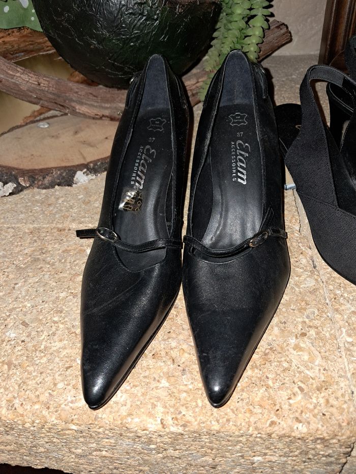 1 paire etam bout pointu etam neuves avec etiquette taille 37 noire 1 paire noire fermée devant Charles de bracelet neuve sans etiquette talon bas 1 paire de sandale blanche avec fleur talon bas neuve 37 laureana Maison non fumeur premiere main, pas d'animaux D'autres vetements et accessoires sur #laul57femme Je propose les frais de port à 1e via une autre appli