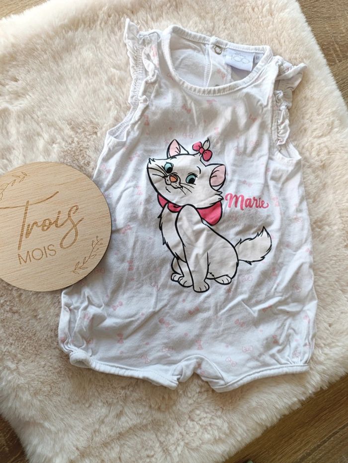 🌺 Marque : Disney 🌺 Taille : 3 mois 🌺 Jolie barboteuse Blanche motif Marie des artistochats #deborahcog_3moisfille