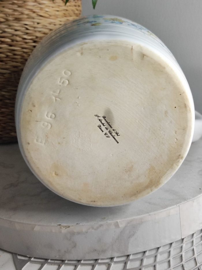 Grand pichet en porcelaine en parfait état. Fabrication porcelaine d'art, St André de chalençon, décor C.S. Au jolie décor floral. Ni fêle ou ebruchures. Dimensions H20 x D11,5