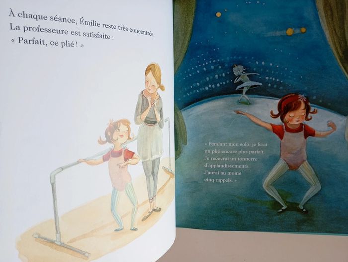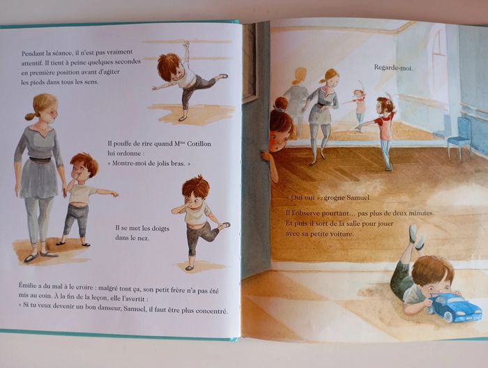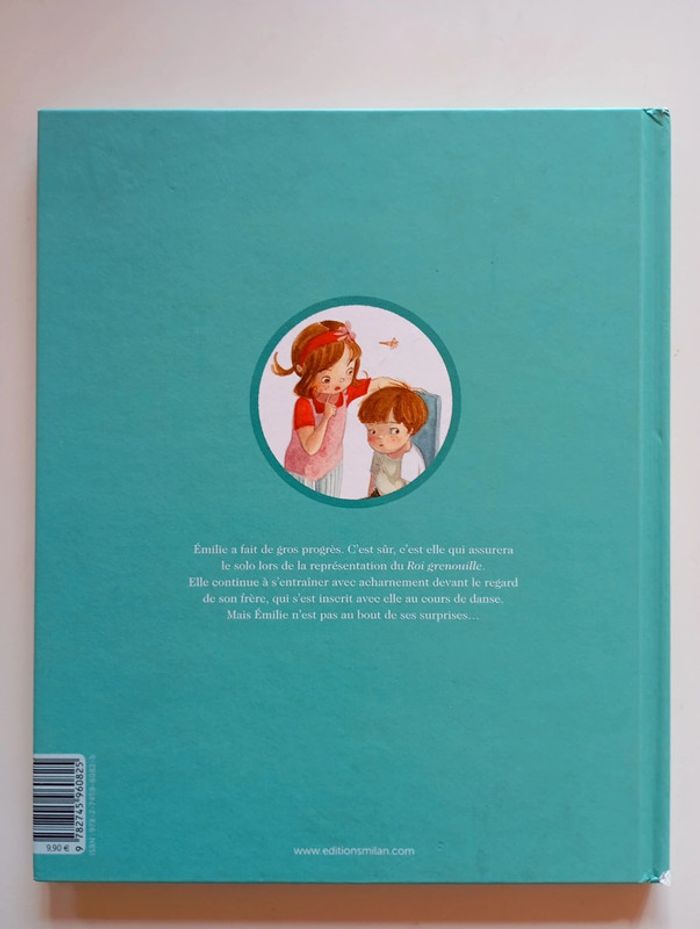 Emilie a fait de gros progrès. C'est sûr, c'est elle qui assurera le solo lors de la représentation du Roi grenouille. Elle continue à s'entraîner avec acharnement devant le regard de son frère, qui s'est inscrit avec elle au cours de danse. Mais Emilie n'est pas au bout de ses surprises... Éditeur ‏ : ‎ Editions Milan 30 pages Âge de lecture ‏ : ‎ 5 - 7 ans Dimensions ‏ : ‎ 20.7 x 1 x 25.2 cm Livre en très bon état (Un coin arrière de couverture blanchi) #danse #albumjeunesse