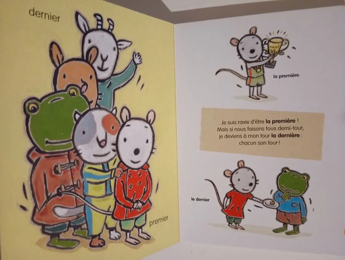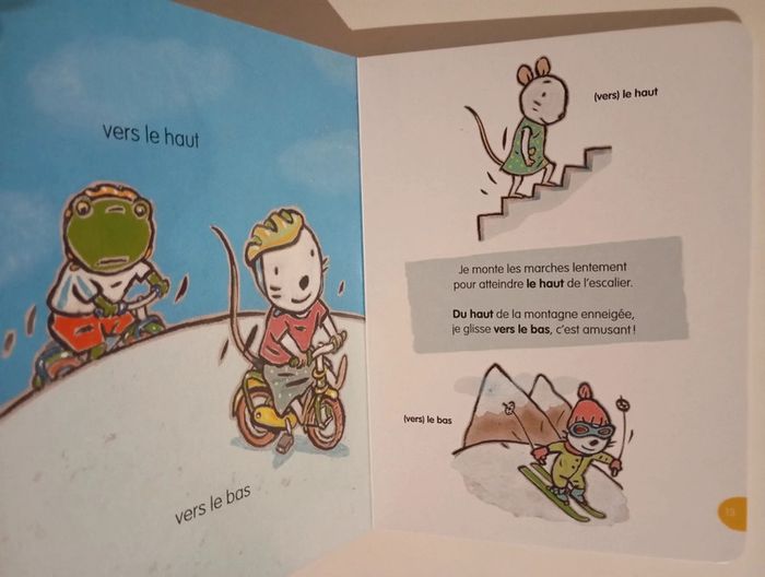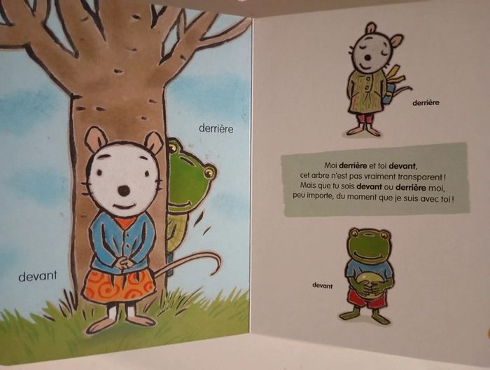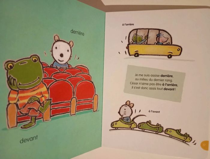 Dix planches en couleurs pour découvrir les adjectifs, adverbes et prépositions de position et de direction. Devant, derrière, face à face, ou côte à côte ... Une manière amusante d'apprendre à se situer dans l'espace et de développer le vocabulaire, grâce aux comptines et aux illustrations de Nelly & César ! Livre tout carton Editeur ‏ : ‎ Averbode 20 pages Âge de lecture ‏ : ‎ 0 - 3 ans Dimensions ‏ : ‎ 15.5 x 1.2 x 21 cm Livre en excellent état #livrebébé #langage #vocabulaire #apprendreàpaler