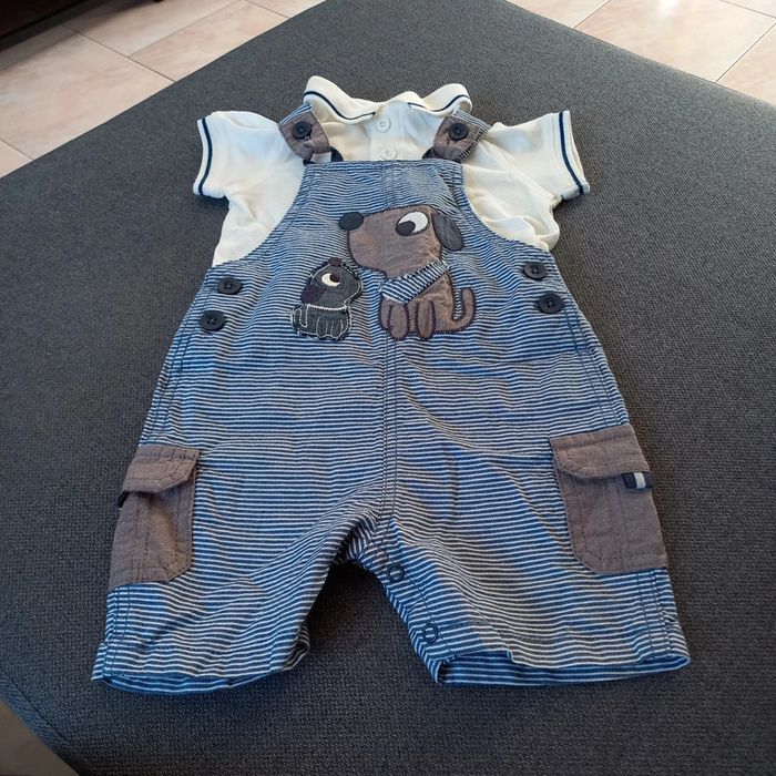 Ensemble salopette motifs petites chiens avec polo blanc L ensemble n a jamais été porté mais je n ai plus l étiquette Kiabi Taille 12 mois
