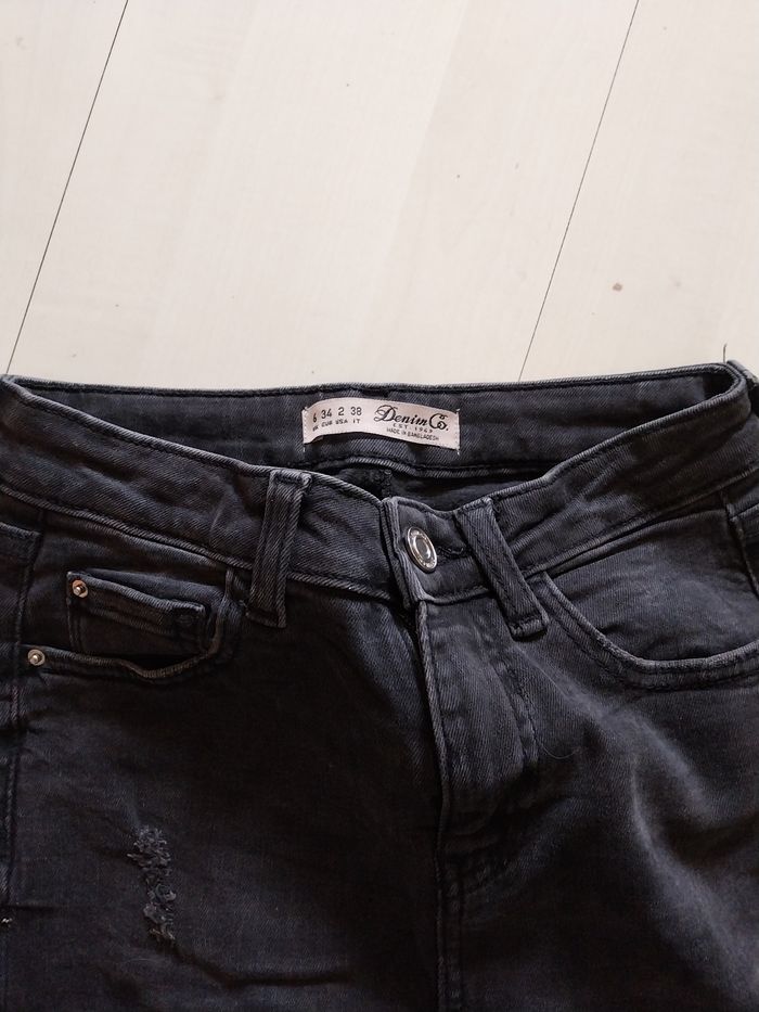 Bonjour, Je vends ce jean noir pour femme. Il a un effet troué. Il est en taille 34 de la marque denim co et est en très bon état.