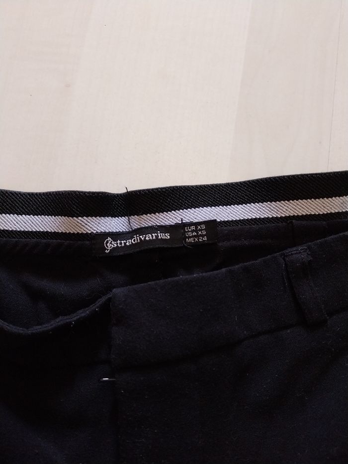 Bonjour, Je vends ce pantalon droit noir pour femme. Il est en très bon état, en taille 34 (XS sur l'étiquette) de la marque stradivarius.