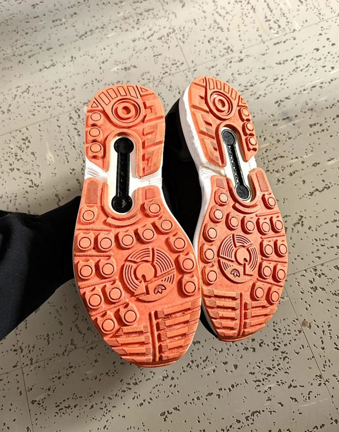 Basket Adidas ZX Flux 📏 Pointure 37 1/3 🎨 Couleur Noir, saumon 📜 Très bon état, légèrement abîmé au dessus (voir dernière photo) 🗂️ Catégorie : #bkcec77 baloncesto basketbal, schoenen cispheil, basquetebol, sapatos