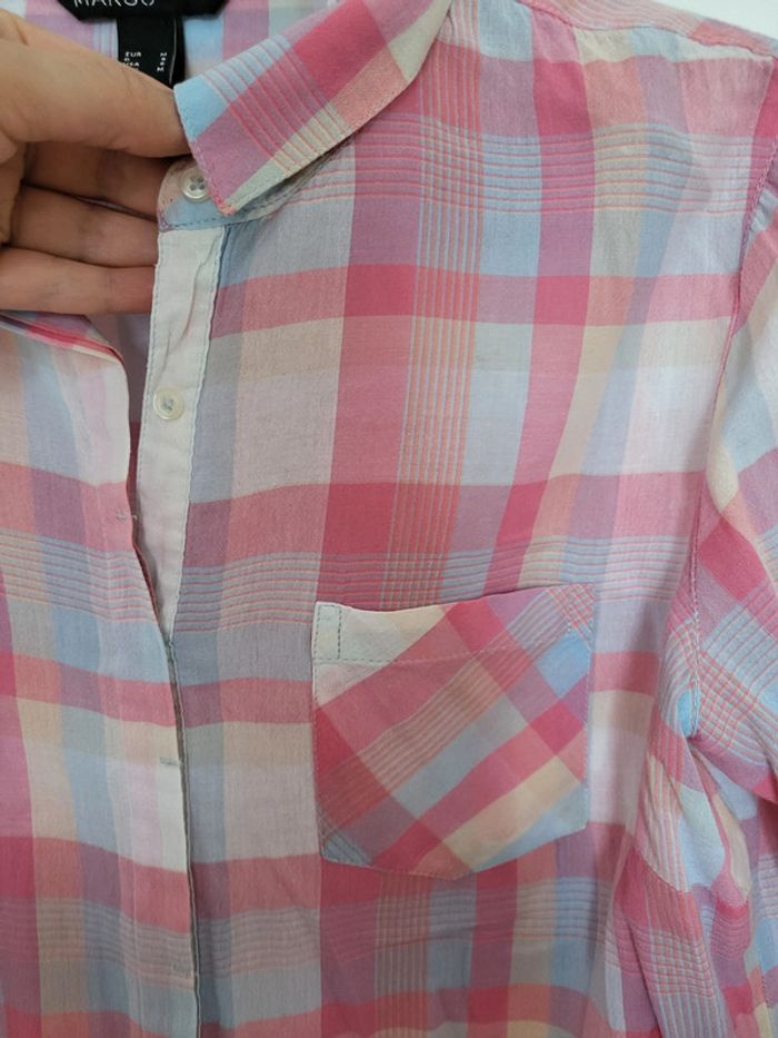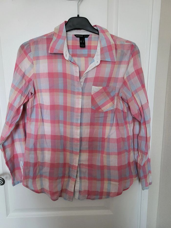 Chemise à carreaux rose bleu jaune blanc Mango Taille M #SILVVêtementsFtM