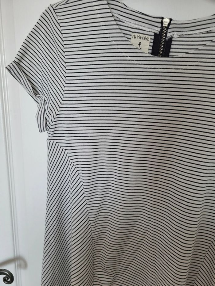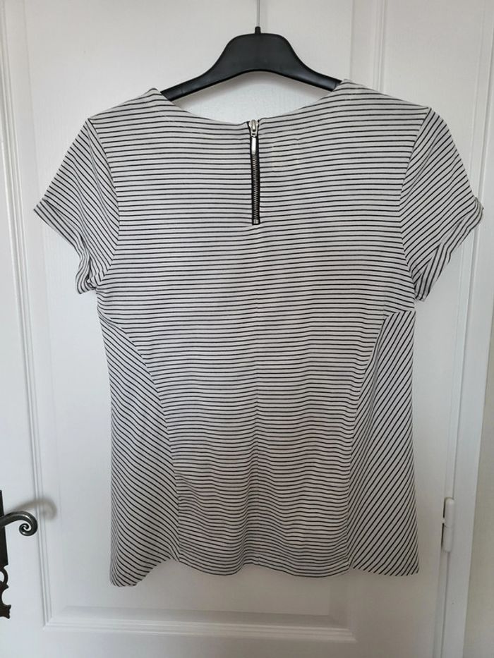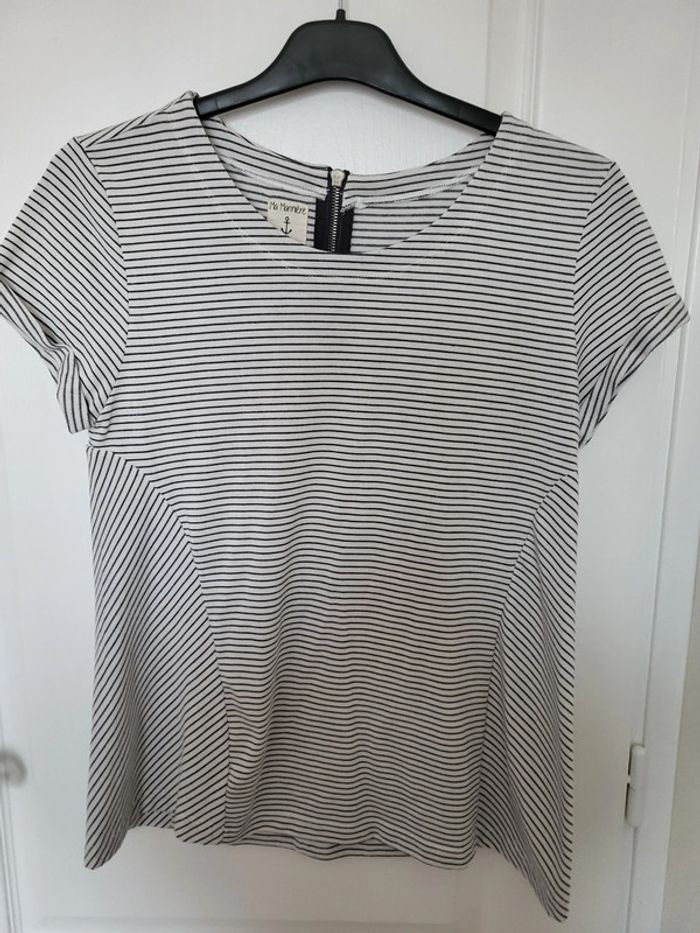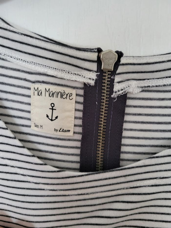 T-shirt marinière gris blanc Etam Taille M Fermeture éclair sur le dos #SILVVêtementsFtM