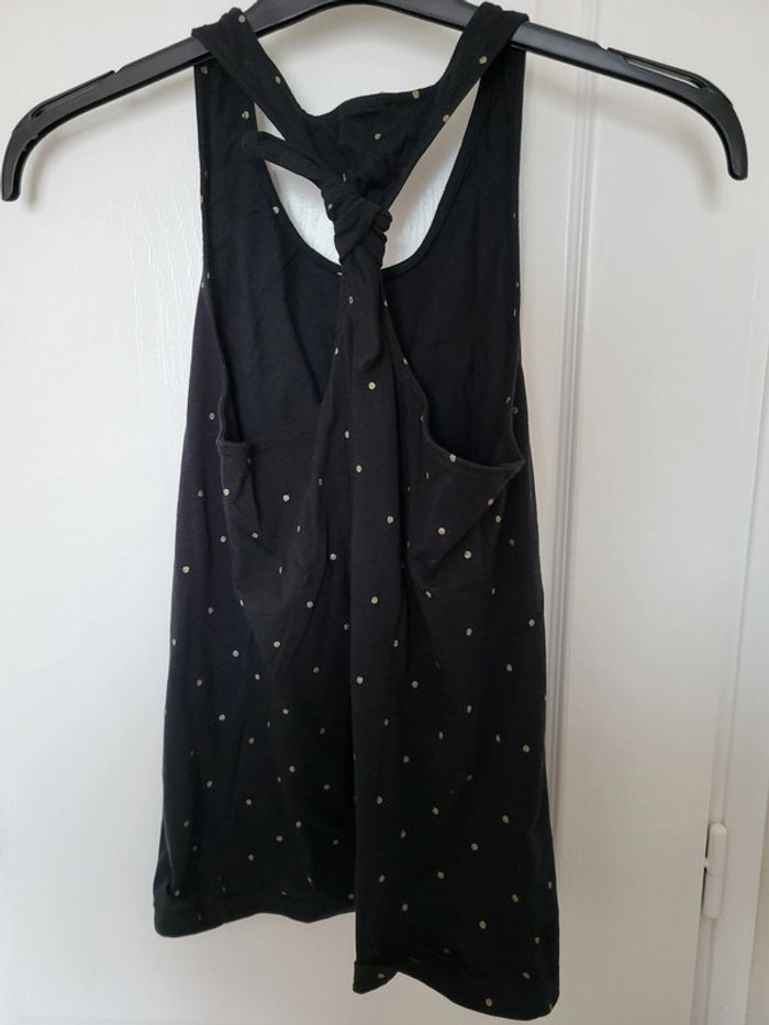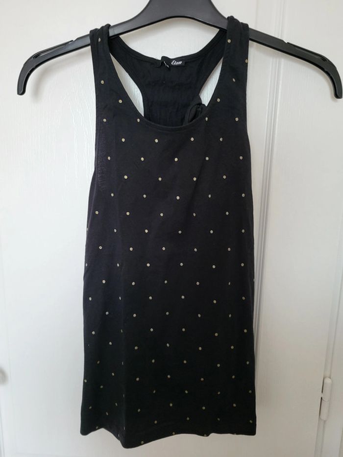 Débardeur noir à pois dorés Etam Taille M Noeud dans le dos pour serrer les bretelles du débardeur Coton #SILVVêtementsFtM