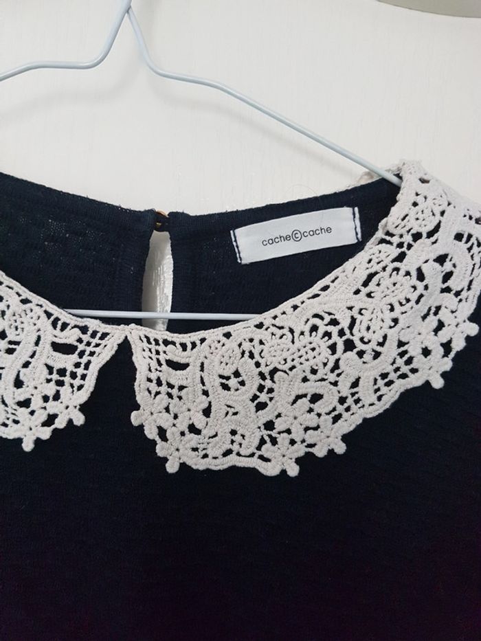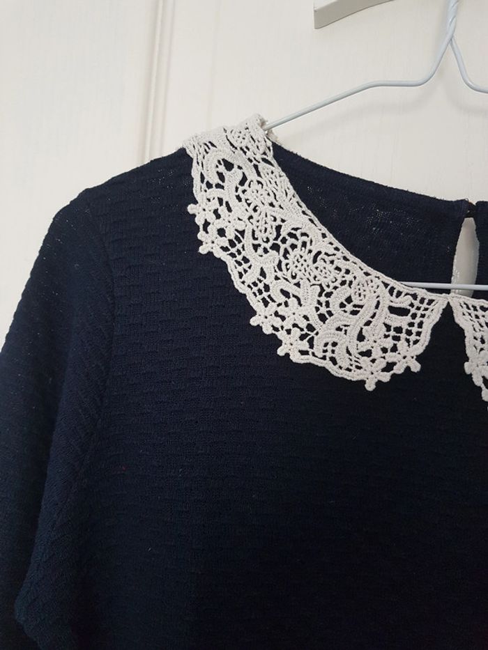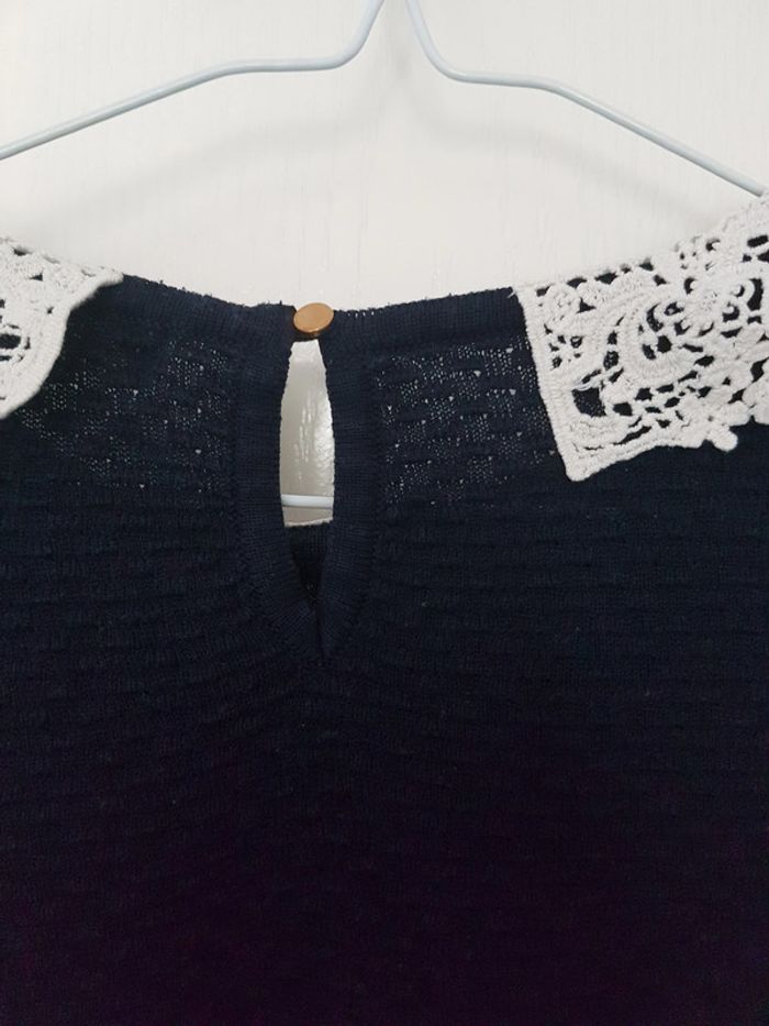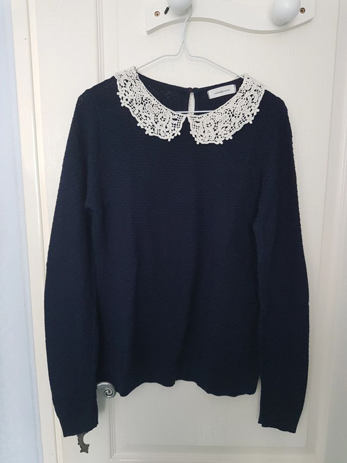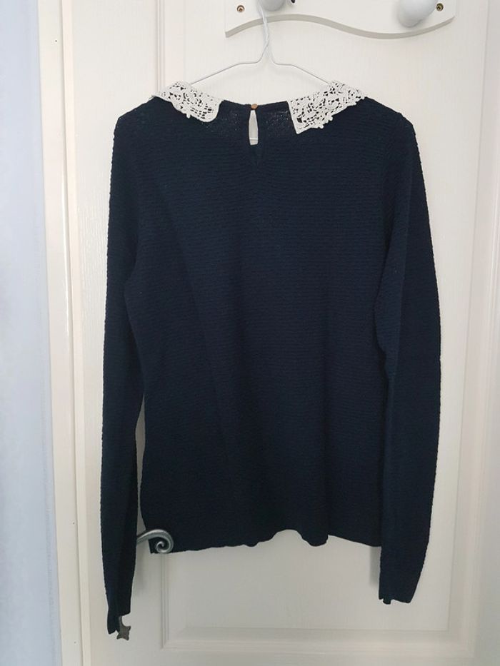 Pull bleu marine Cache cache Détails sur le col Fermeture par un bouton sur l'arrière (peut s'enfiler sans l'ouvrir) Etiquette coupée mais il s'agit d'une taille S #SILVVêtementsFtS