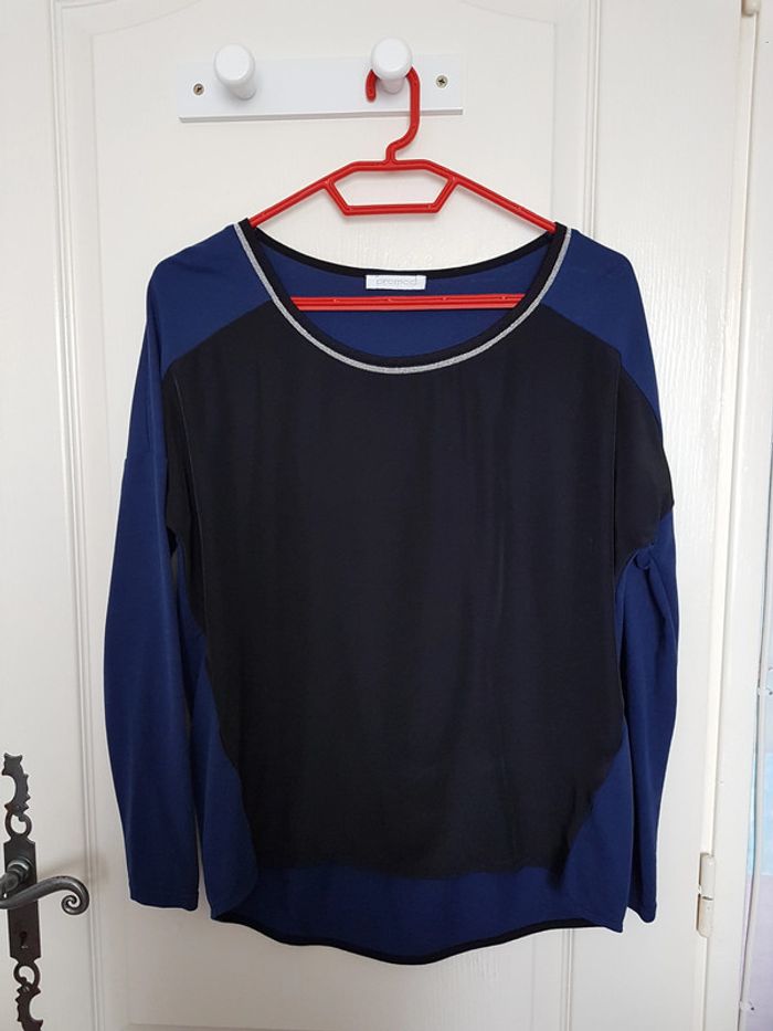 Haut noir et bleu, col argenté Tissu doux Etiquette coupée mais il s'agit d'une taille M. #SILVVêtementsFtM