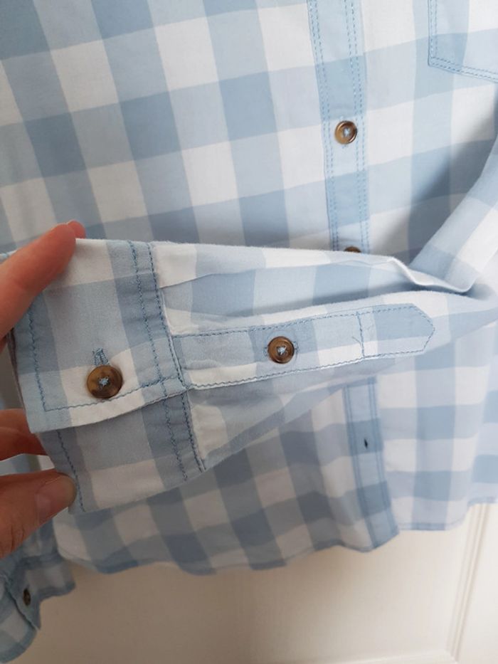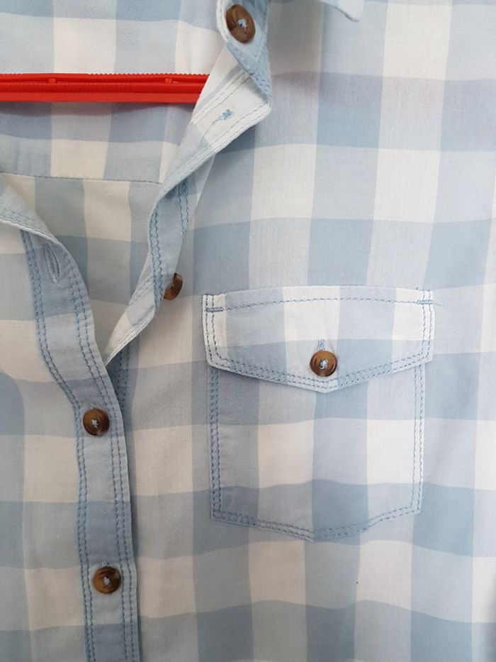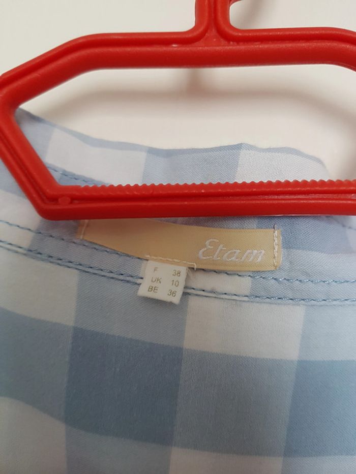 Chemise à carreaux bleu et blanche, avec boutons marrons Marque Etam Taille 38 Coton #SILVVêtementsFtM