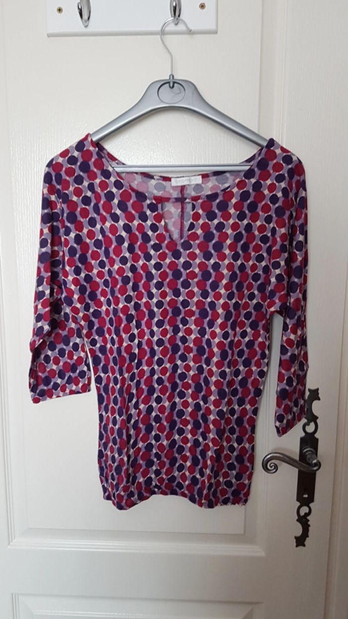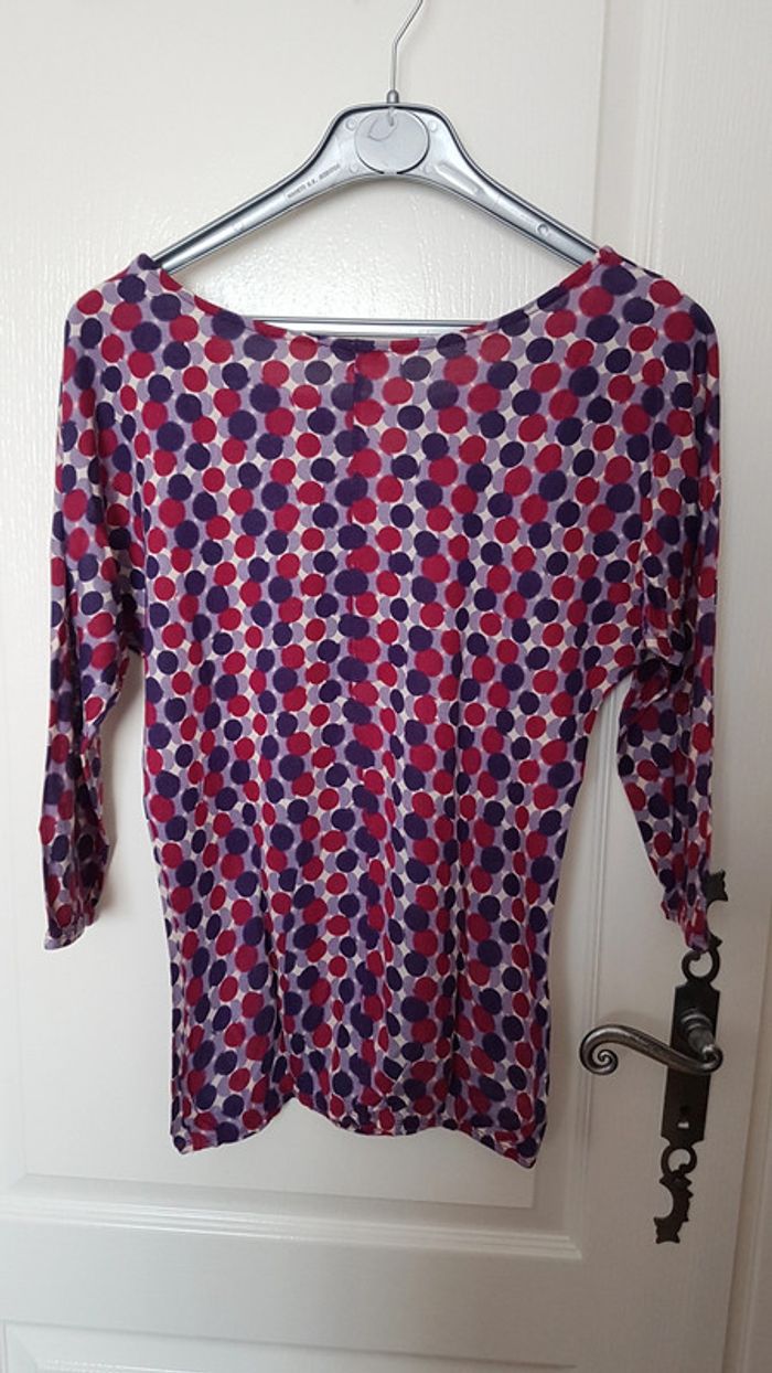 Tunique à pois Promod rose et violet Manches 3/4 Taille 1 Viscose #SILVVêtementsFtS