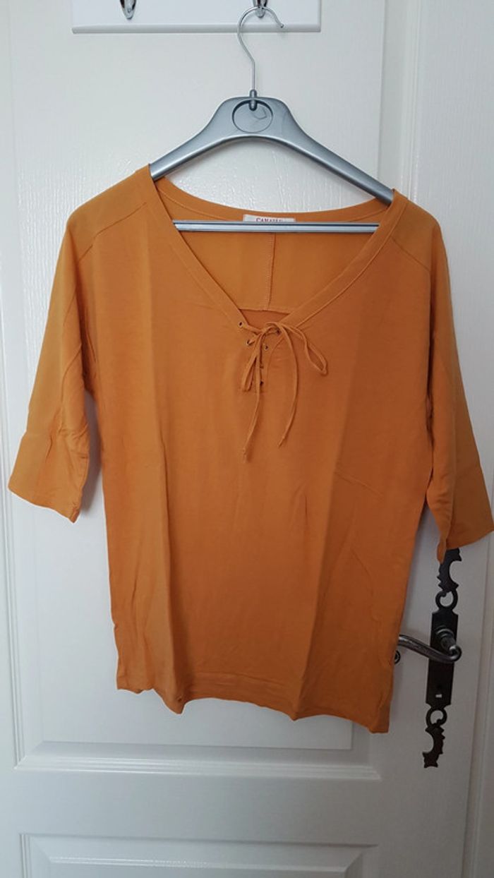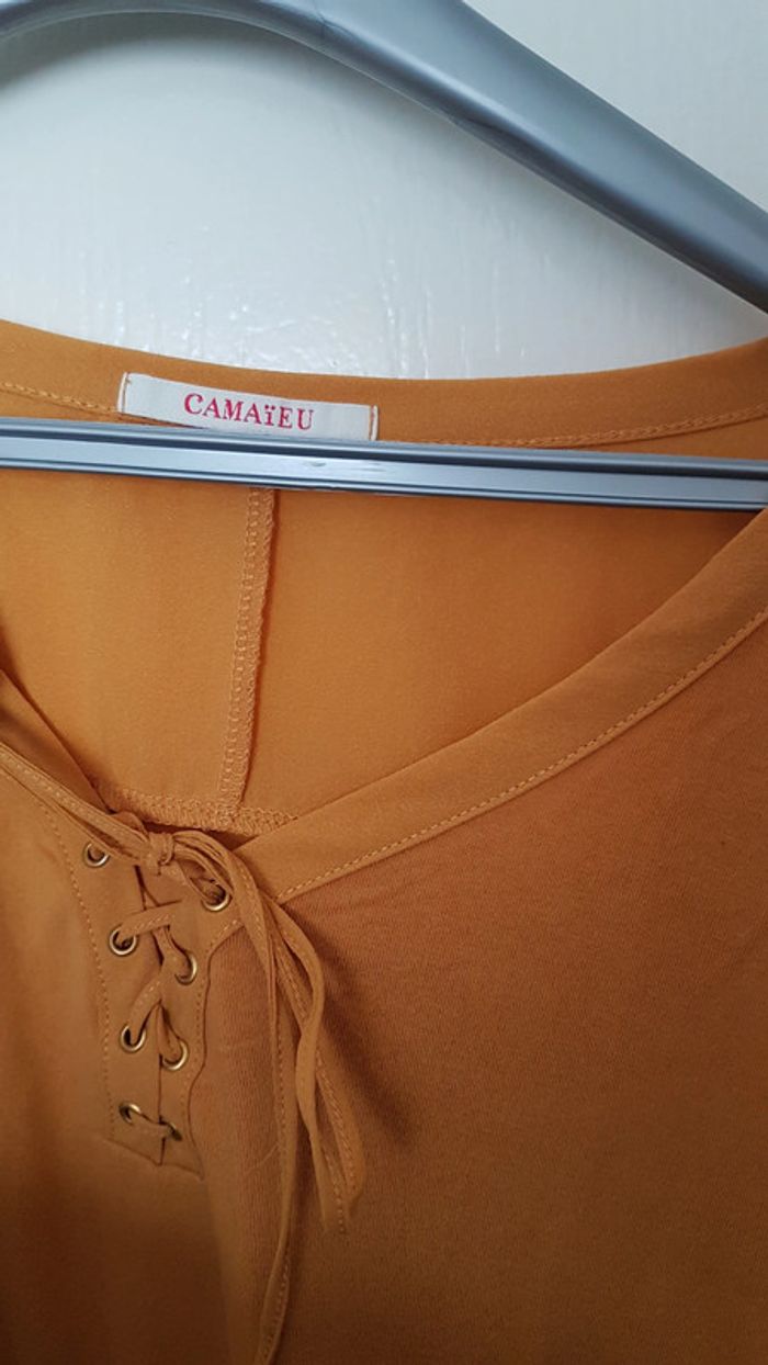 Tshirt jaune moutarde Camaïeu Noeud sur le devant Etiquette coupée mais il s'agit d'une taille S #SILVVêtementsFtS