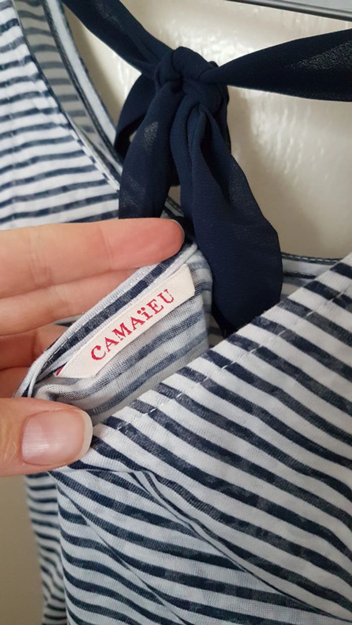 Débardeur à rayures bleu et blanc camaïeu - photo numéro 2
