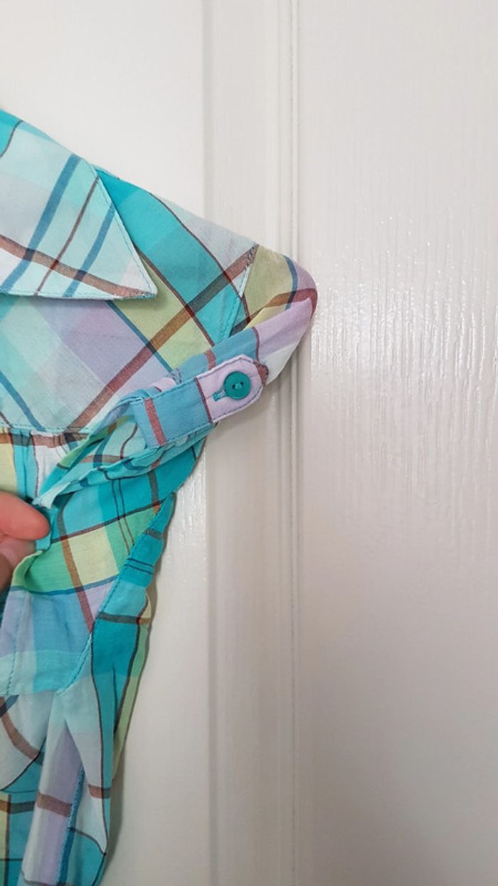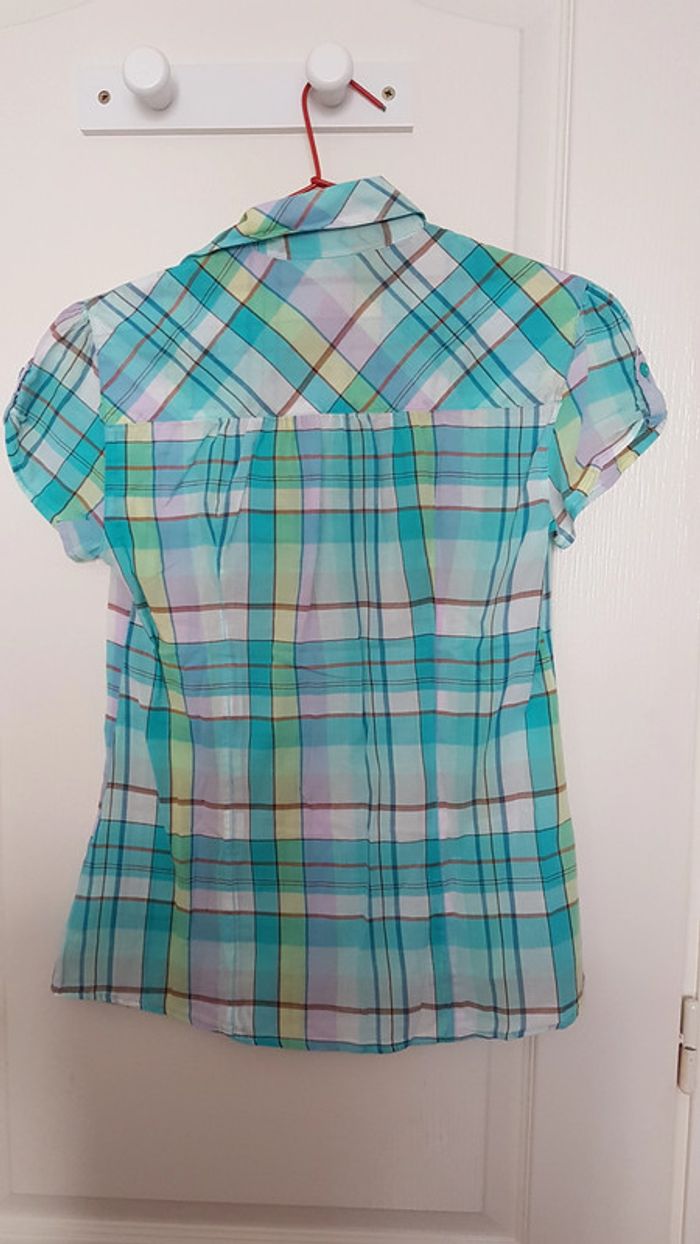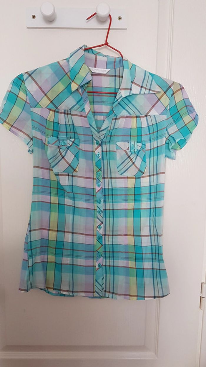 Chemise à carreaux à manches courtes Camaieu Etiquette coupée mais il s'agit d'une taille 36 Bleu, blanc, marron, jaune Col en V #SILVVêtementsFtS