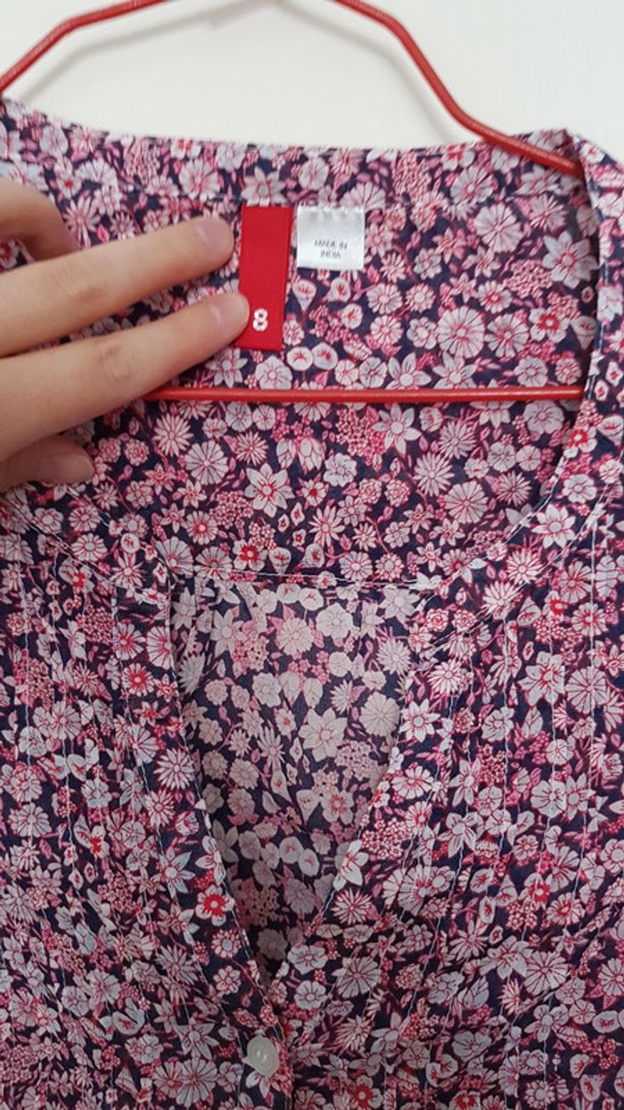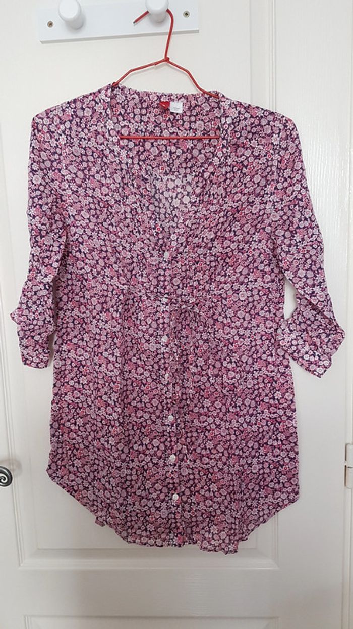Tunique chemise fleurie H&M : violet, rose. Taille S Avec boutons, col en V. Liens pour attacher. #SILVVêtementsFtS