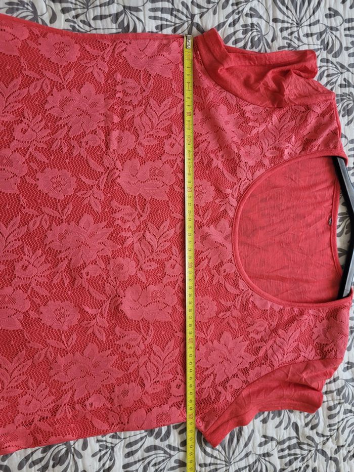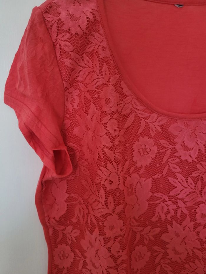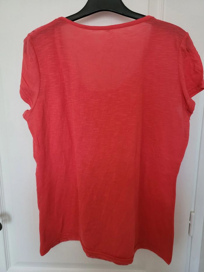 Tee-shirt rose corail plus Motif type dentelle fleur végétal Etiquette coupée mais il s'agit d'une taille 3 (voir mesures sur dernière photo) #SILVVêtementsFtL
