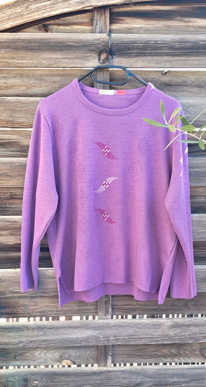 Pull Vintage lila mauve violet brodé - photo numéro 1