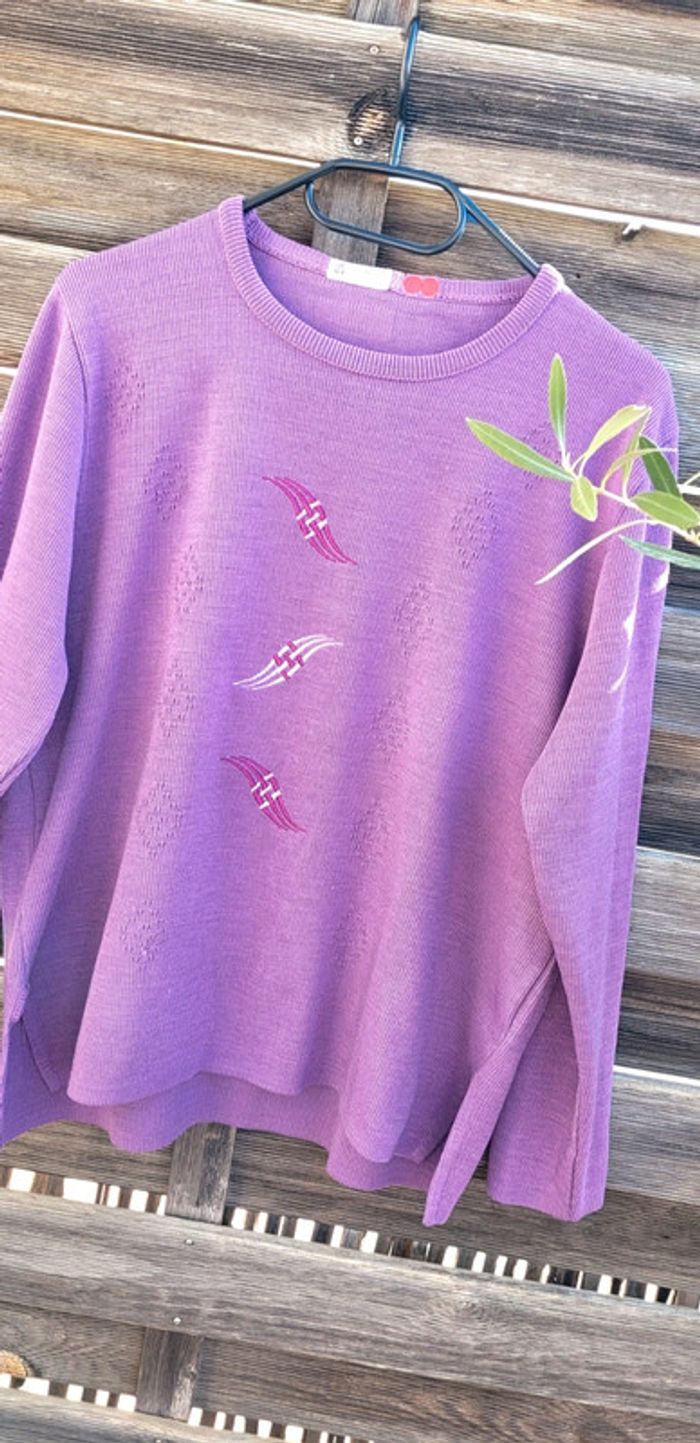 Pull Vintage lila mauve violet brodé - photo numéro 2