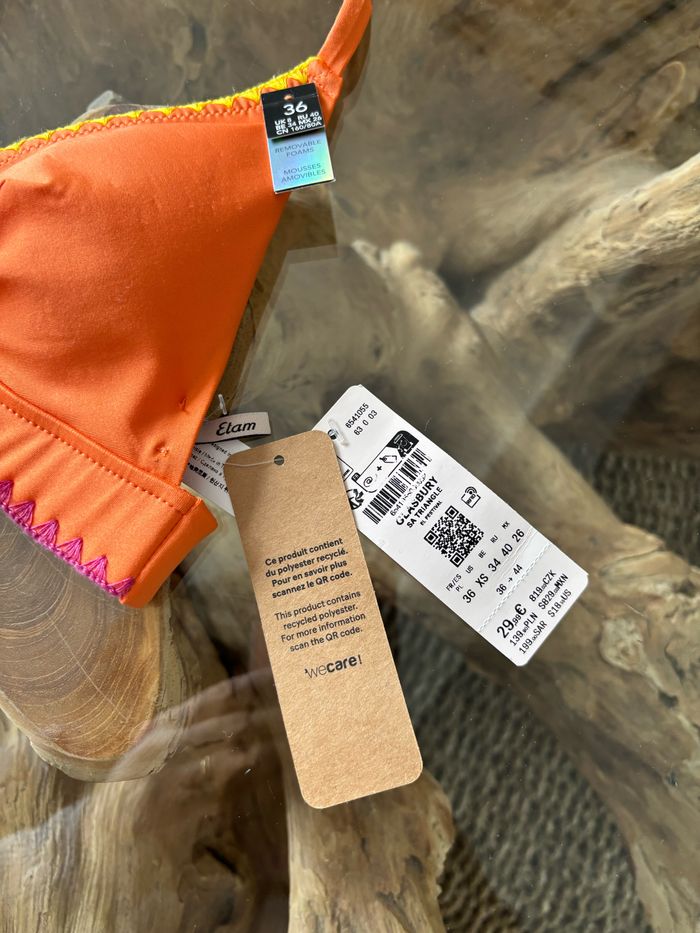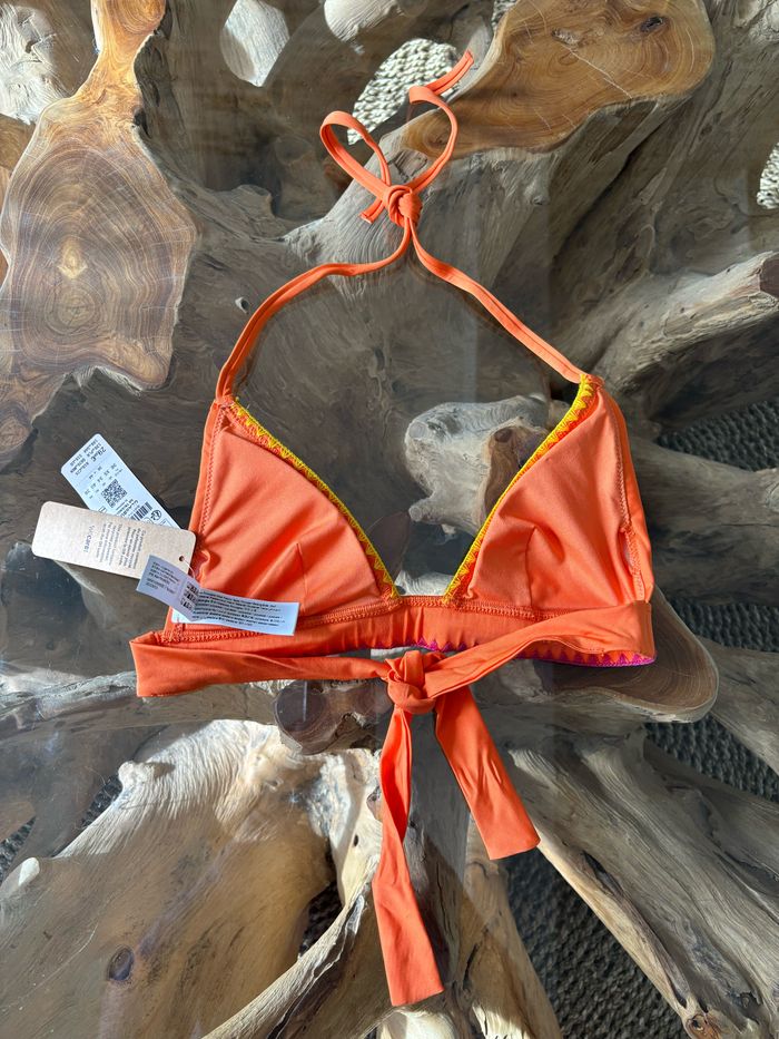 Haut de maillot de bain Etam Modèle Glasbury SA Triangle El festival Réglable dans le dos et cou avec les ficelles Orange avec coutures roses et jaunes Coussinets amovibles Taille 36 Neuf avec étiquette N'hésitez pas à faire des lots ✨ réduction dès 2 articles (d'autres maillots de bain à vendre) Pour voir mes autres maillots de bain à vendre : #mdbludi2607 ✉️Pas de remise en main propre