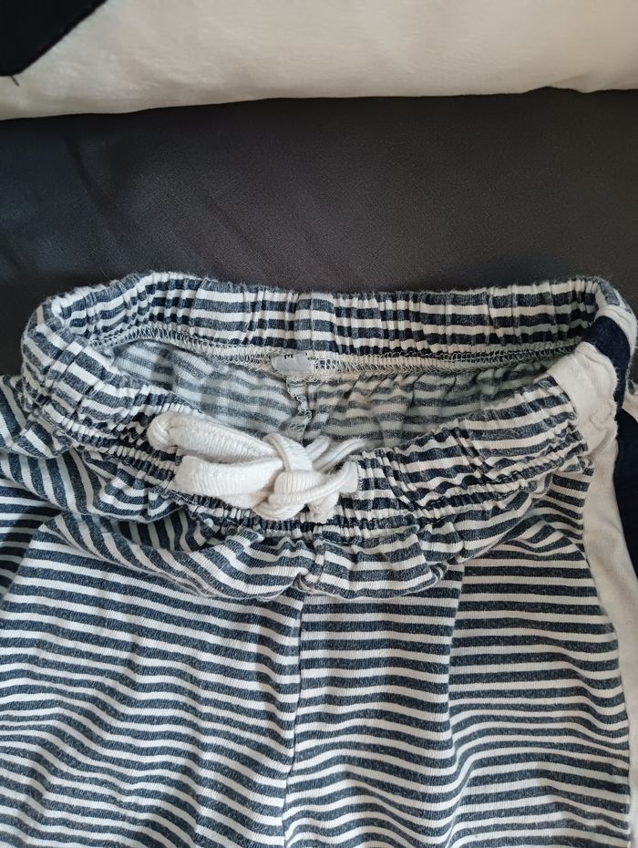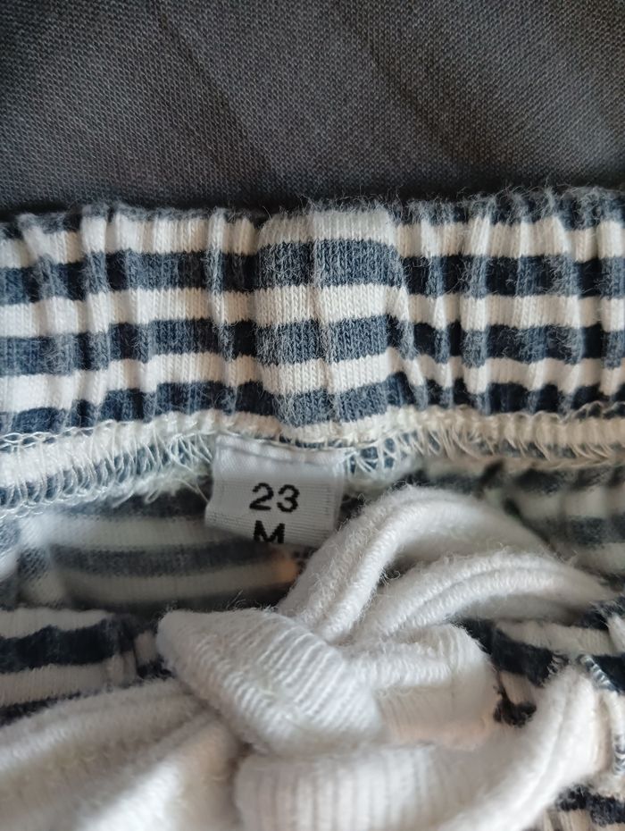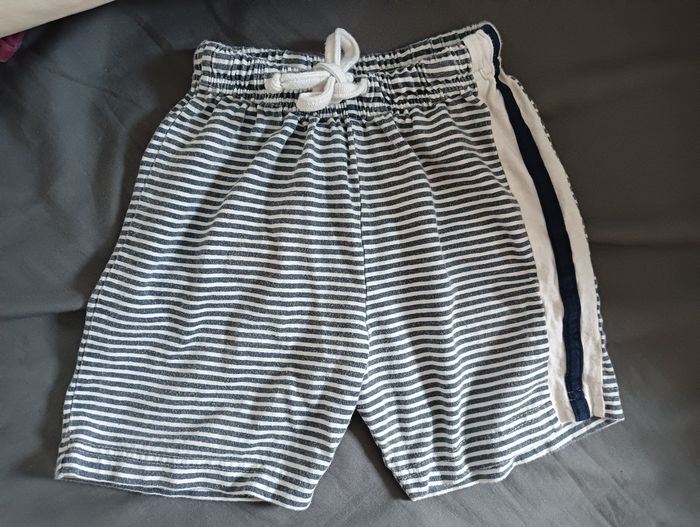 🌀 Short à rayures garçon taille 23 mois. Motifs " Marinière" En bon état ( pas de tâches ni trous) 💫 Matière 100% coton très confortable et légère. 💫 Short pratique avec cordon de serrage à la taille.