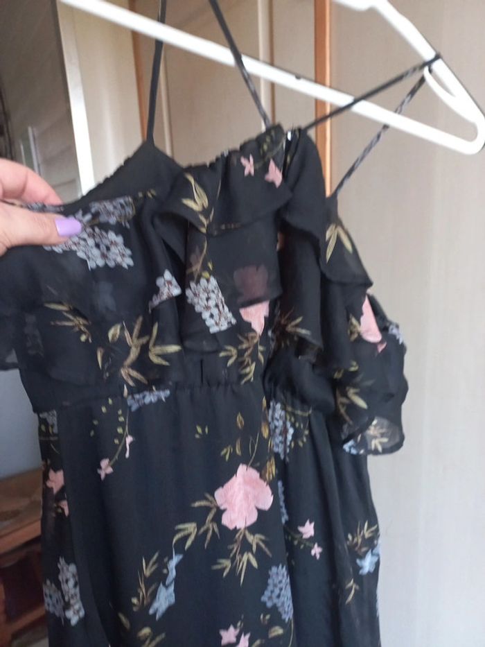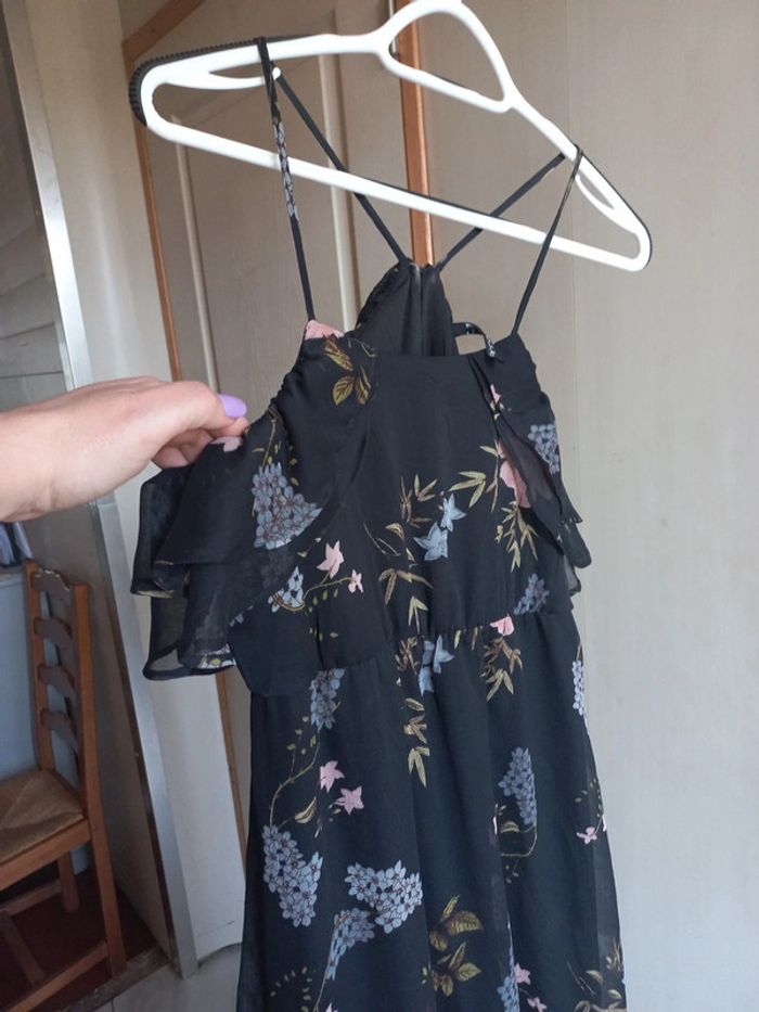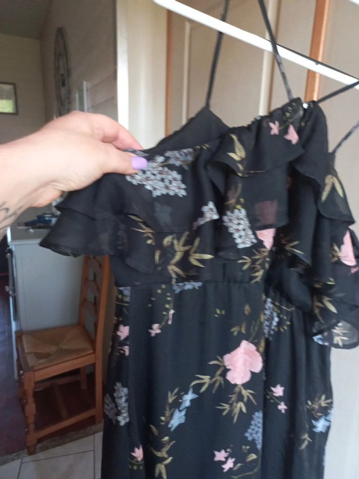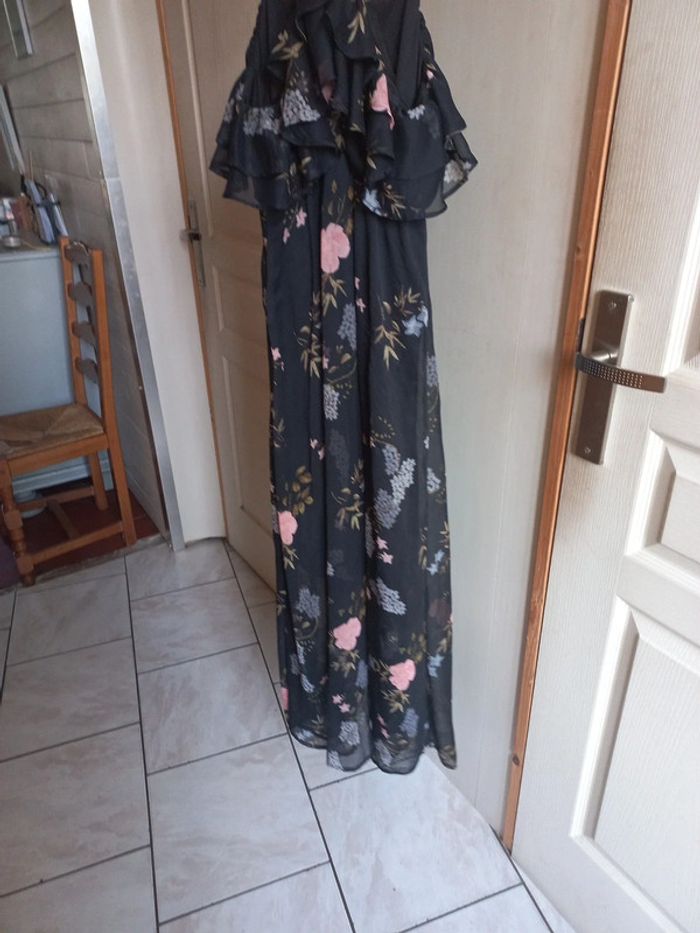 Robe longue noire imprimée fleurs Taille 38