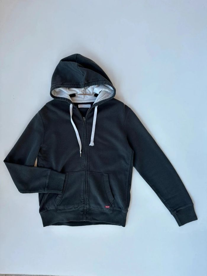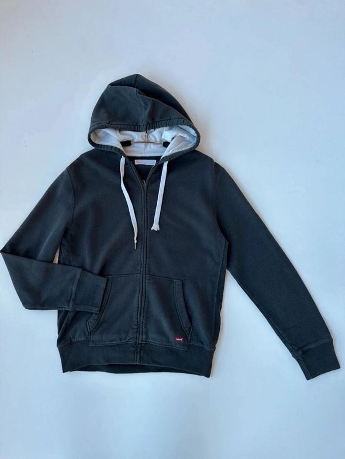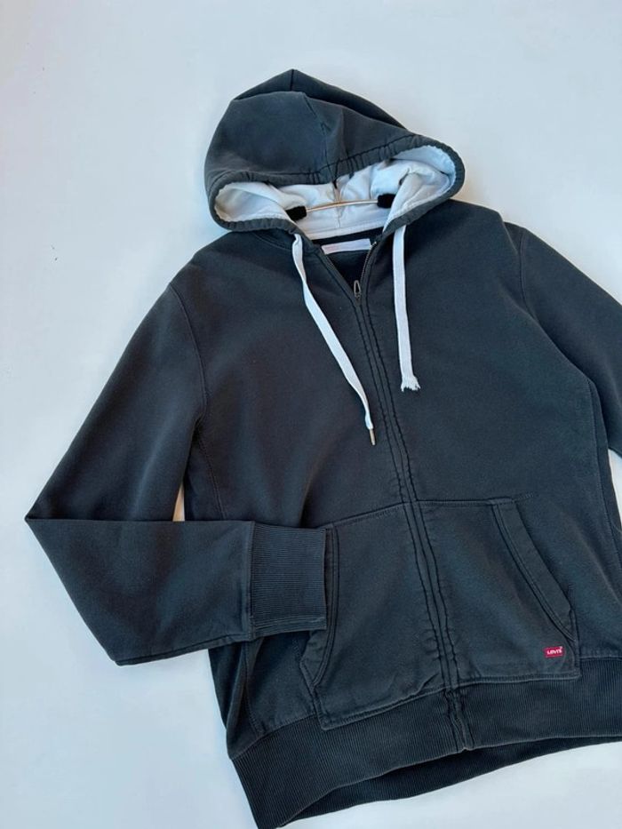 Gilet à capuche Lévis gris anthracite taille S Bon état général Pas de trous. Juste le cordon à perdu un aglet #giletlevis #levis #levisstrauss #levisvintage #giletgris #giletacapuche #giletzippé
