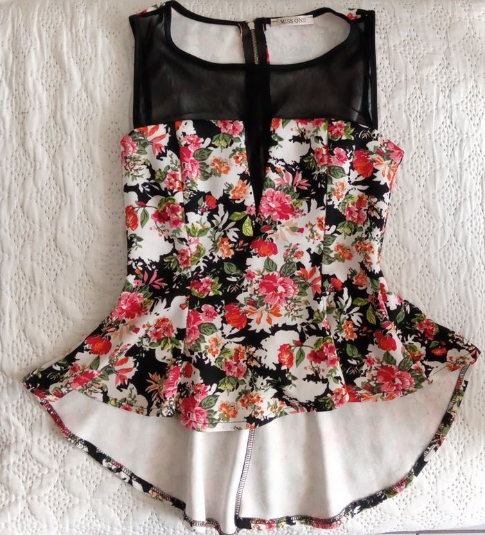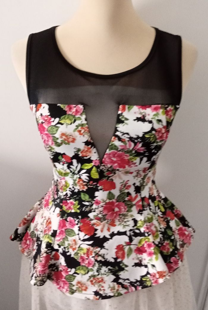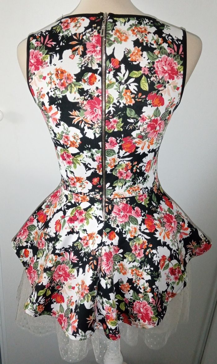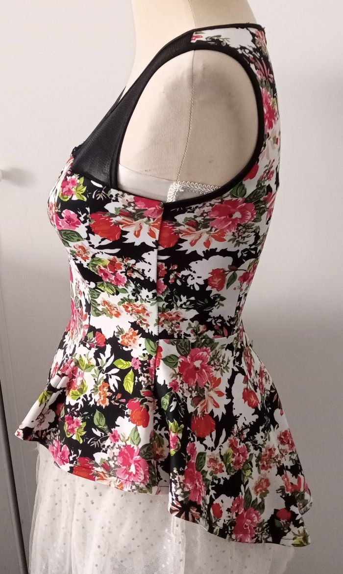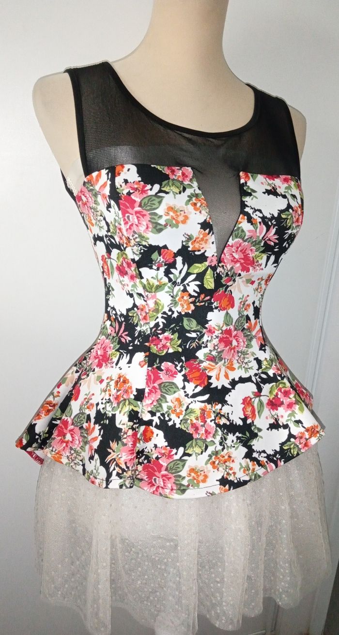 Très jolie imprimés fleurs coupe péplum Taille unique convient très bien de la taille XS à S/M ou 15/16 ans