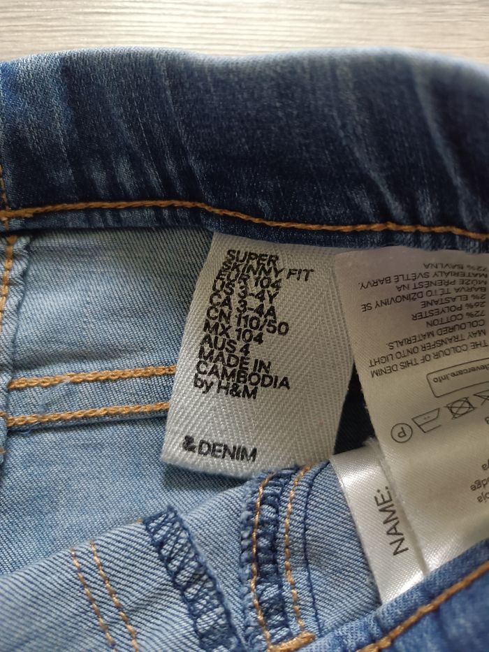 Jeans bleu super skinny marque h&m Taille 3-4ans Très bon état )juste une légère trace d'usure, voir photo)