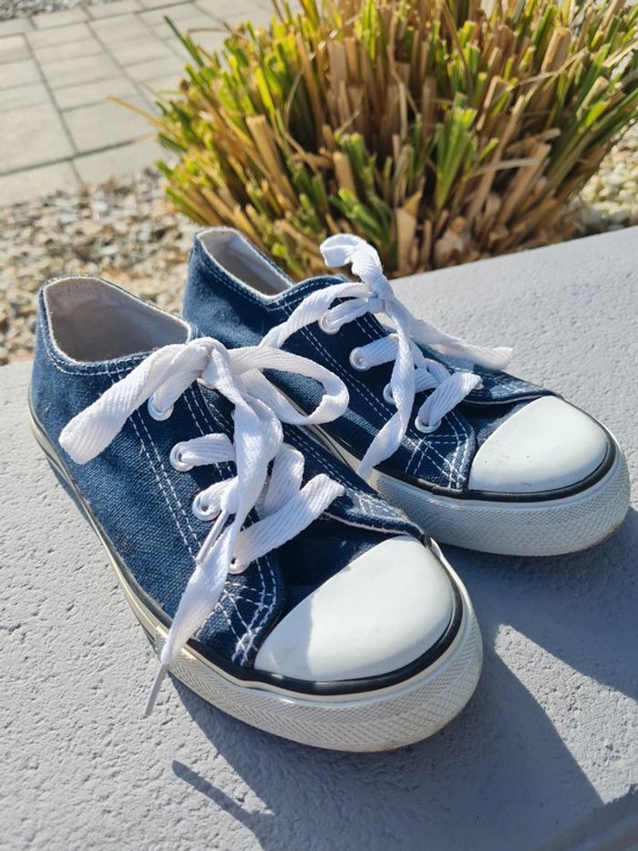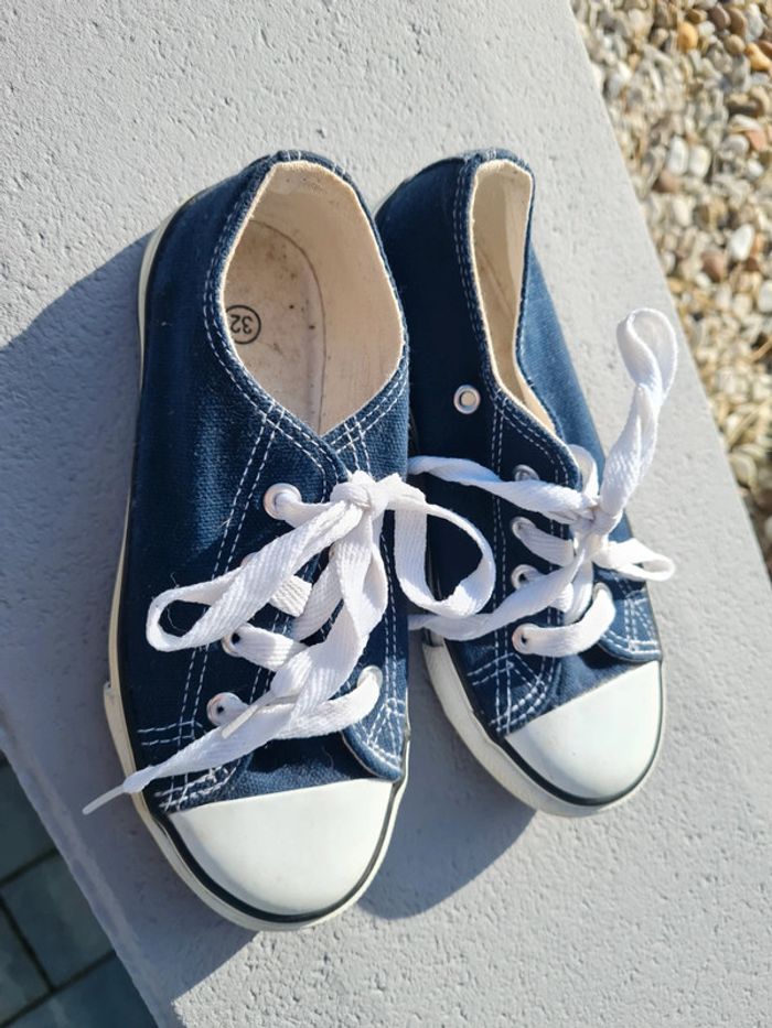 Baskets à lacets pointure 32 bleu très bon état - photo numéro 1