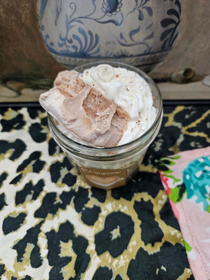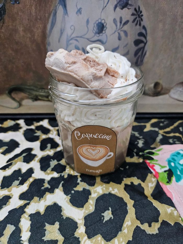 Bougie gourmande au cappucino Neuve Fabrication artisanale Sans CMR Cire de soja Parfum de grasse (10%)
