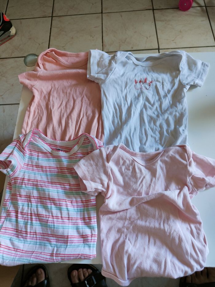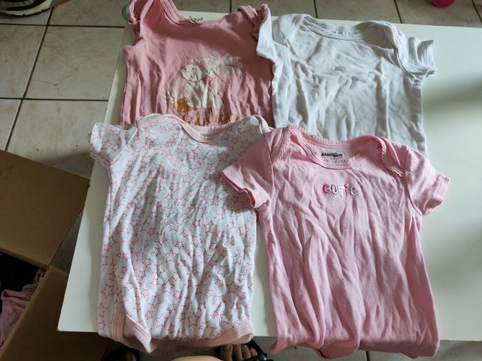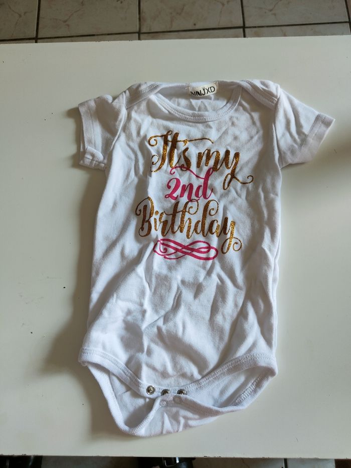 Lot 8 bodys manches courtes le Marie je ne compte pas je le donne le dessin est parti avec le temps . Il y en a un pour le 2eme anniversaire it's my 2nd birthday 🌺18 mois